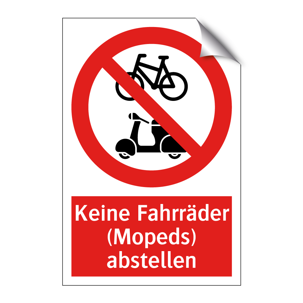 Verbotsschild mit dem Text Keine Fahrräder (Mopeds) abstellen