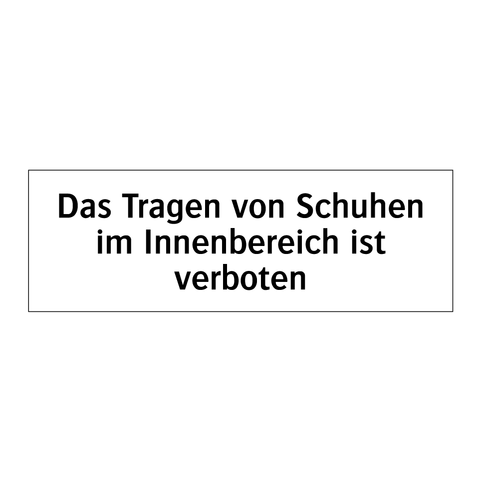 Verbotsschild mit dem Text Das Tragen von Schuhen im Innenbereich ist verboten