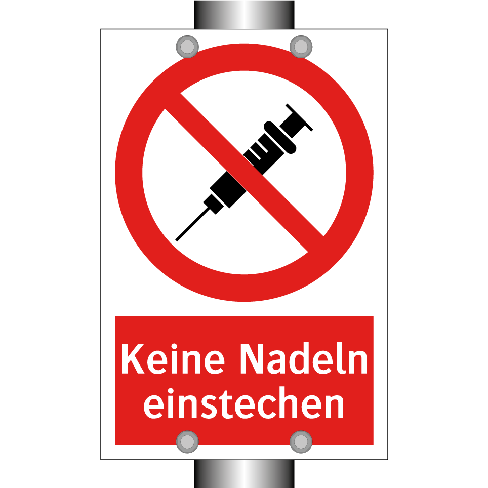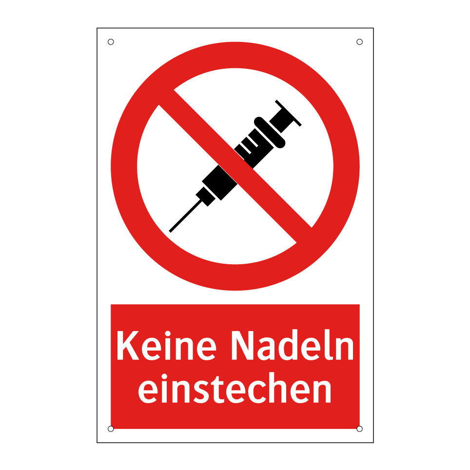 Verbotsschild mit dem Text Keine Nadeln einstechen
