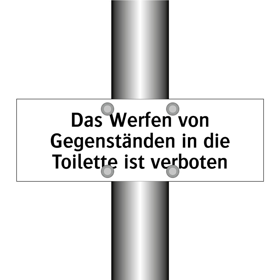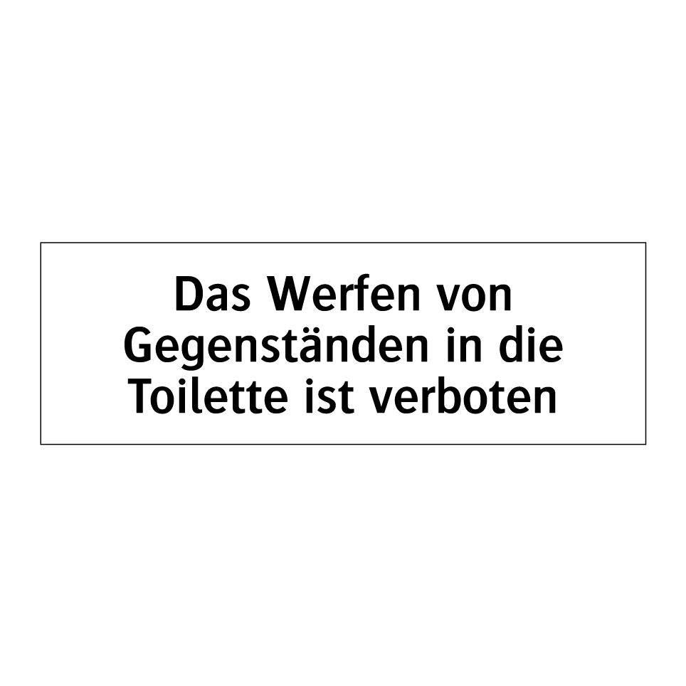 Verbotsschild mit dem Text Das Werfen von Gegenständen in die Toilette ist verboten