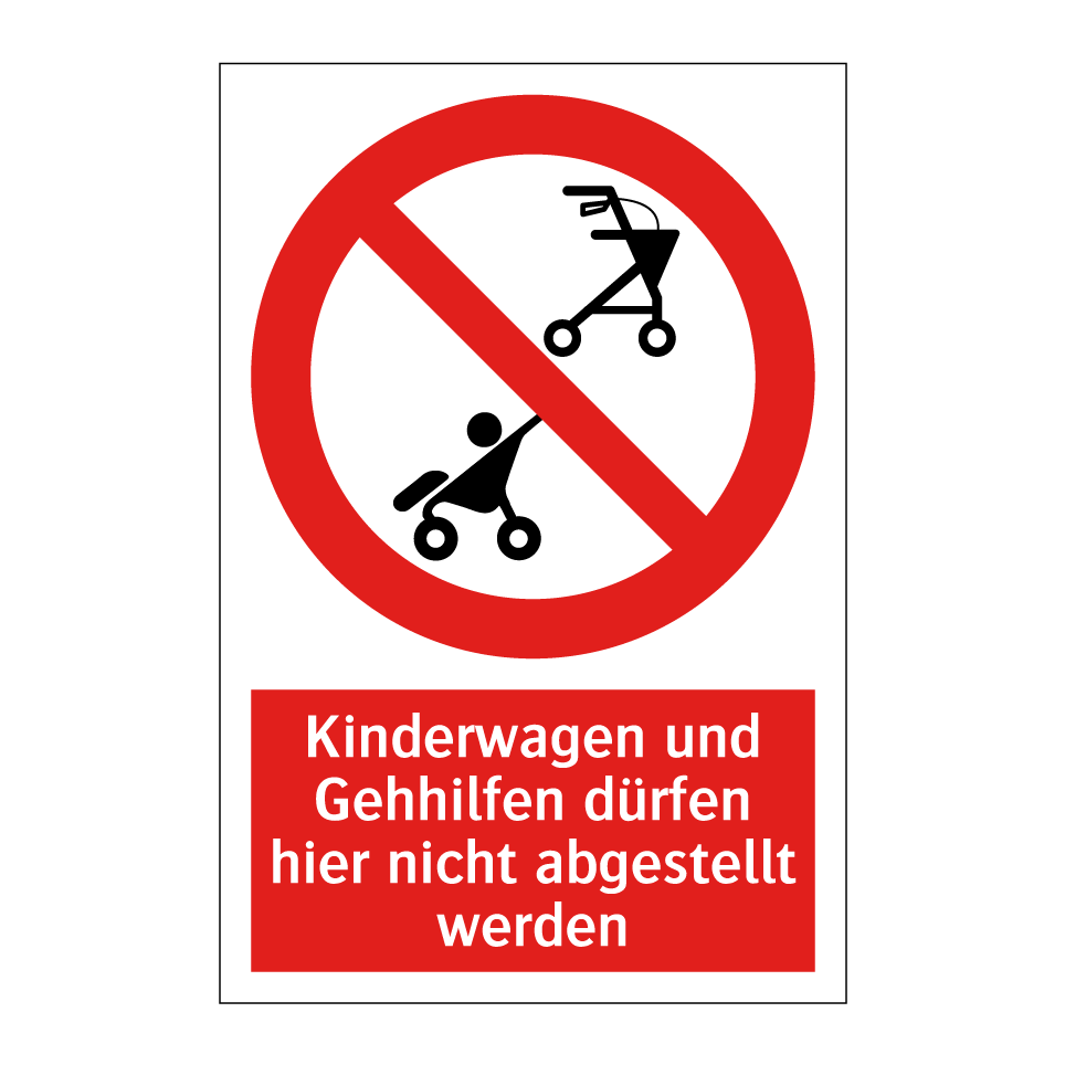 Verbotsschild mit dem Text Kinderwagen und Gehhilfen dürfen hier nicht abgestellt werden