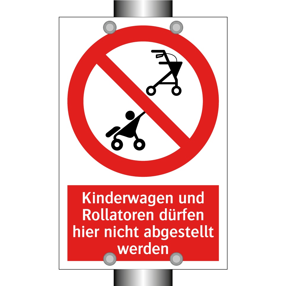 Verbotsschild mit dem Text Kinderwagen und Rollatoren dürfen hier nicht abgestellt werden