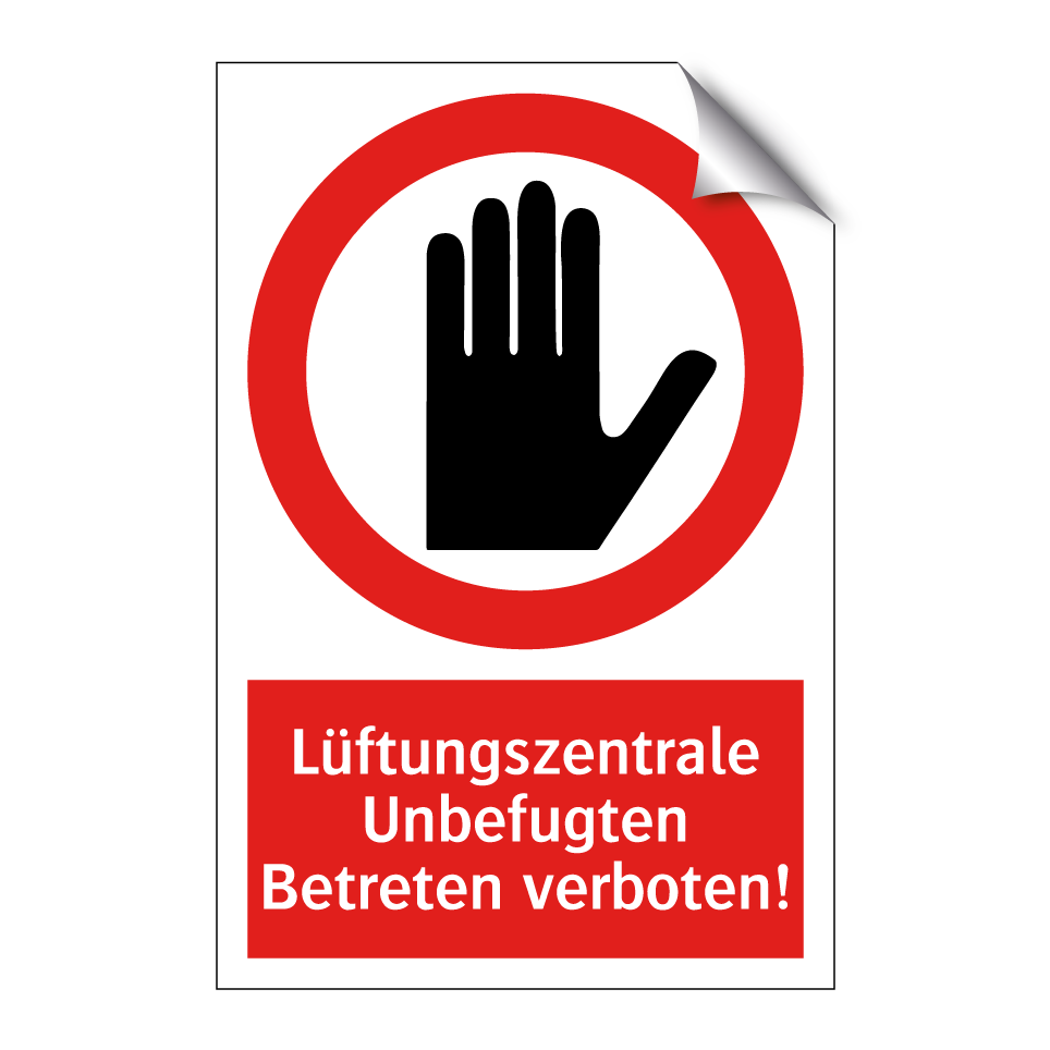 Verbotsschild mit dem Text Lüftungszentrale Unbefugten Betreten verboten!