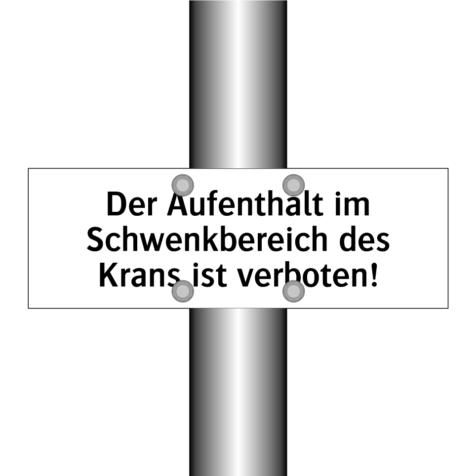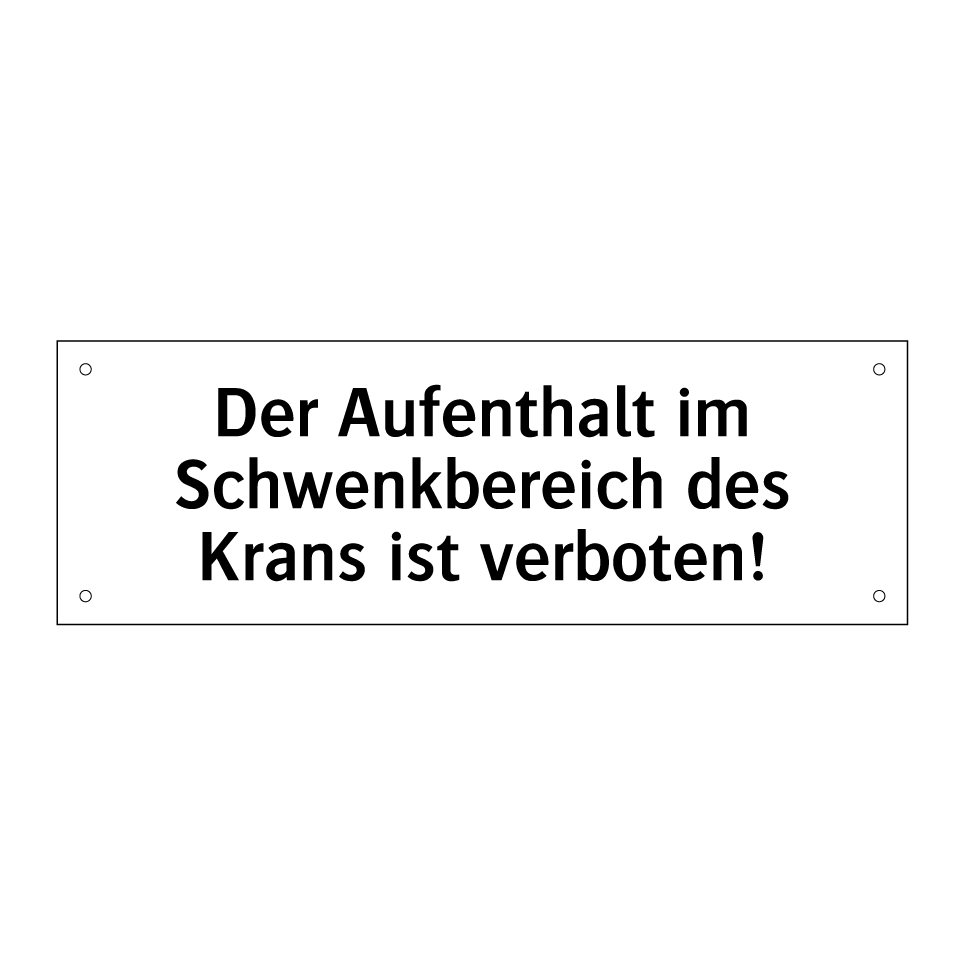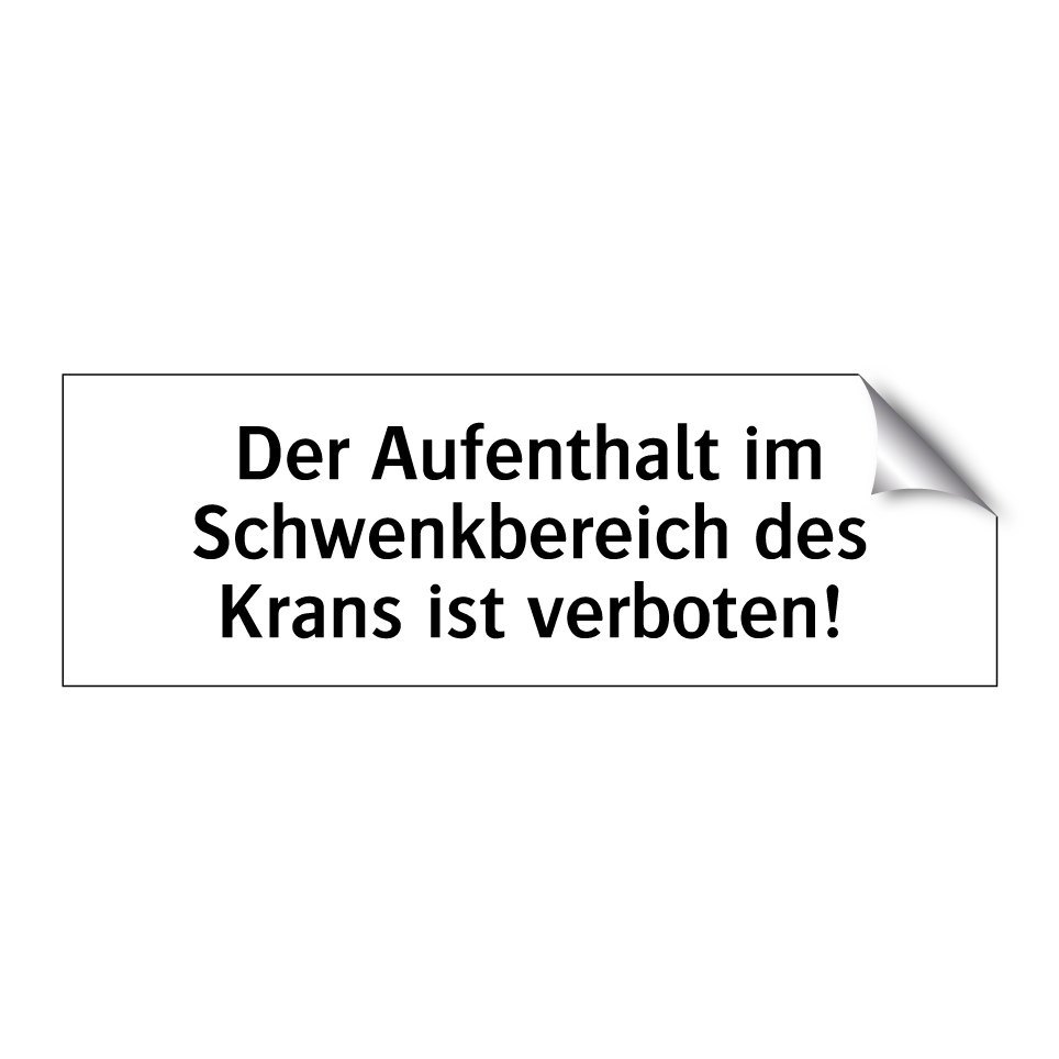 Verbotsschild mit dem Text Der Aufenthalt im Schwenkbereich des Krans ist verboten!