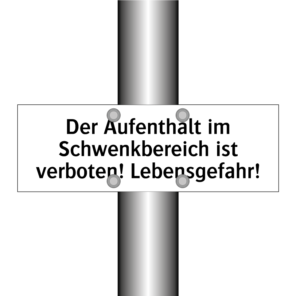 Verbotsschild mit dem Text Der Aufenthalt im Schwenkbereich ist verboten! Lebensgefahr!