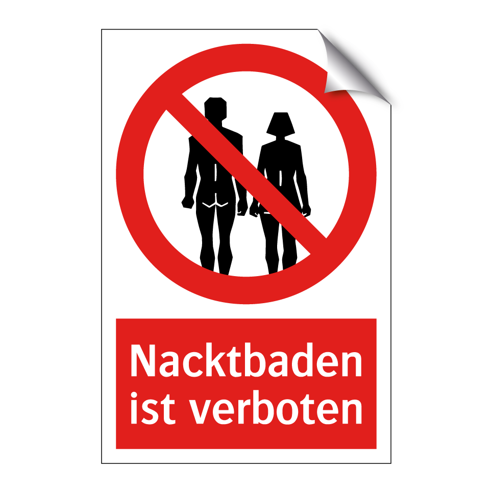 Verbotsschild mit dem Text Nacktbaden ist verboten