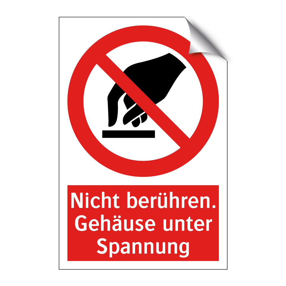 Verbotsschild mit dem Text Nicht berühren. Gehäuse unter Spannung