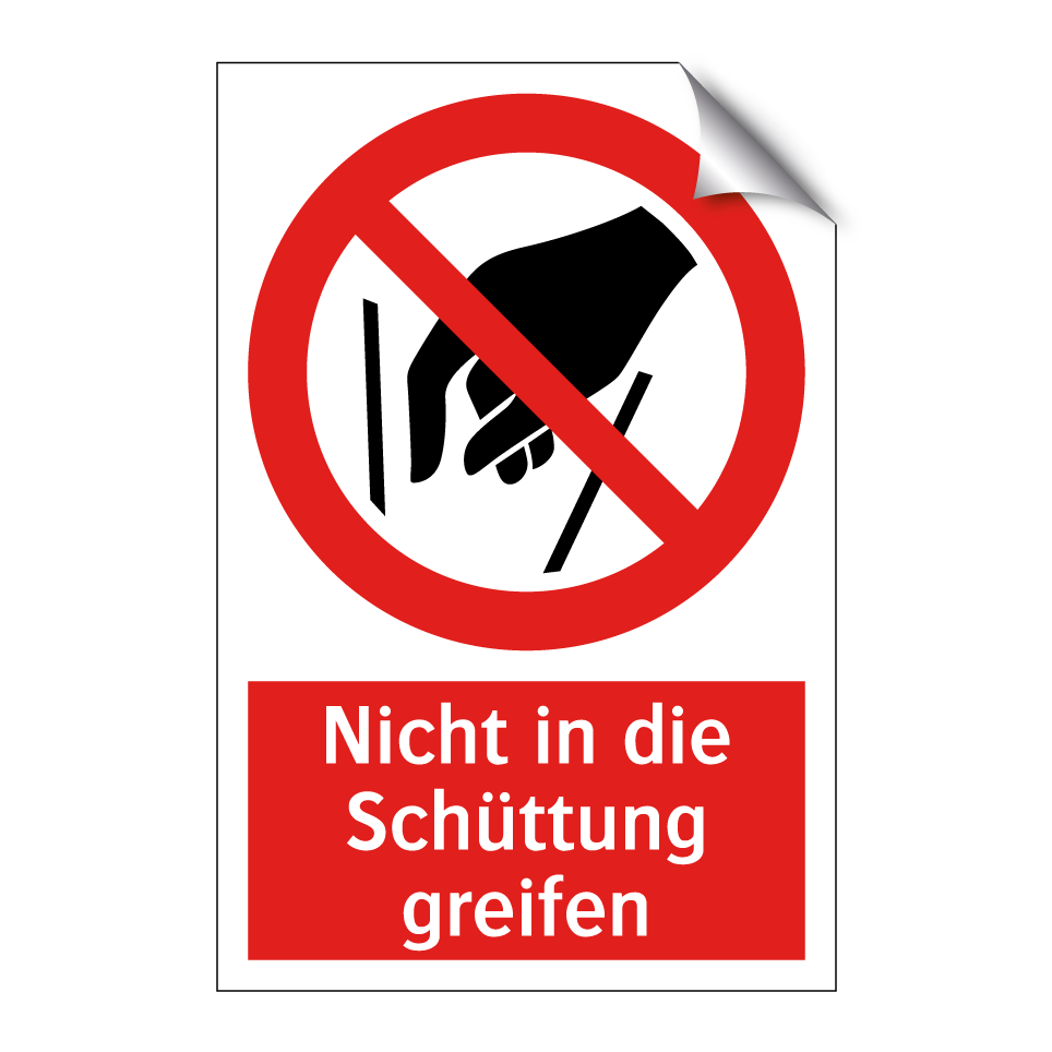 Verbotsschild mit dem Text Nicht in die Schüttung greifen