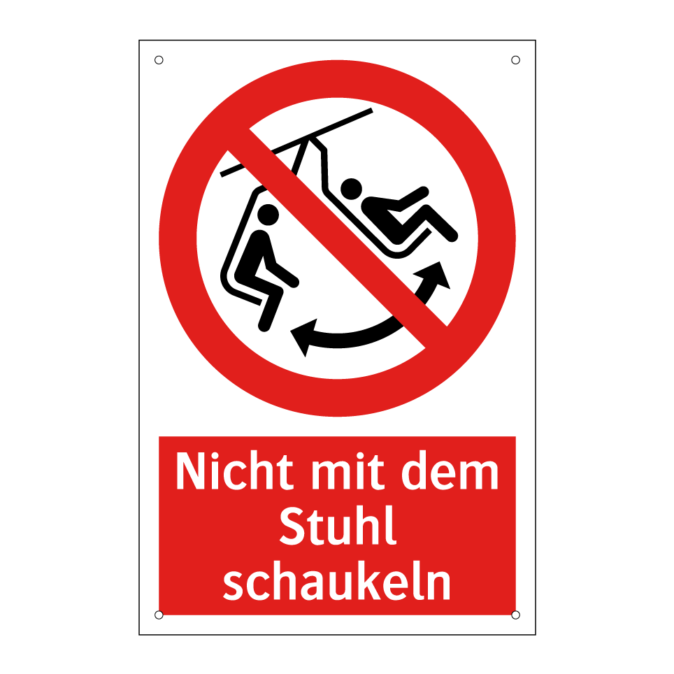 Verbotsschild mit dem Text Nicht mit dem Stuhl schaukeln