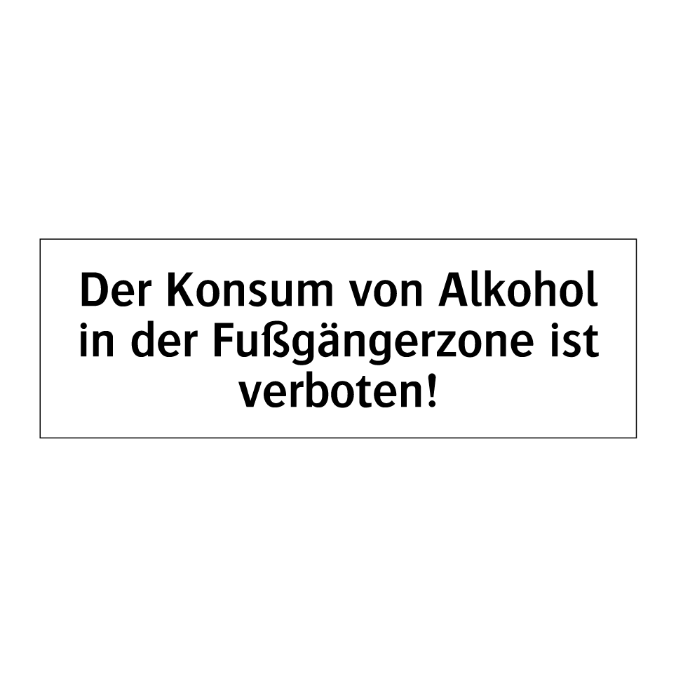 Verbotsschild mit dem Text Der Konsum von Alkohol in der Fußgängerzone ist verboten!