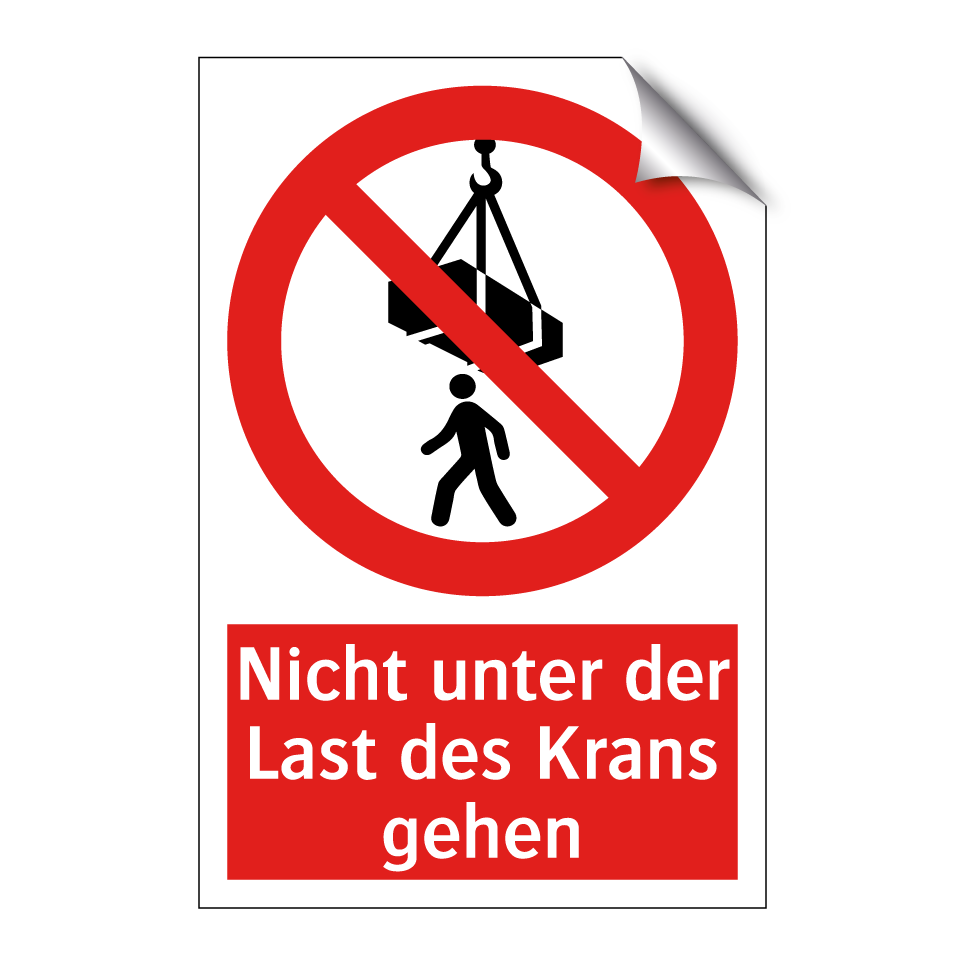 Verbotsschild mit dem Text Nicht unter der Last des Krans gehen