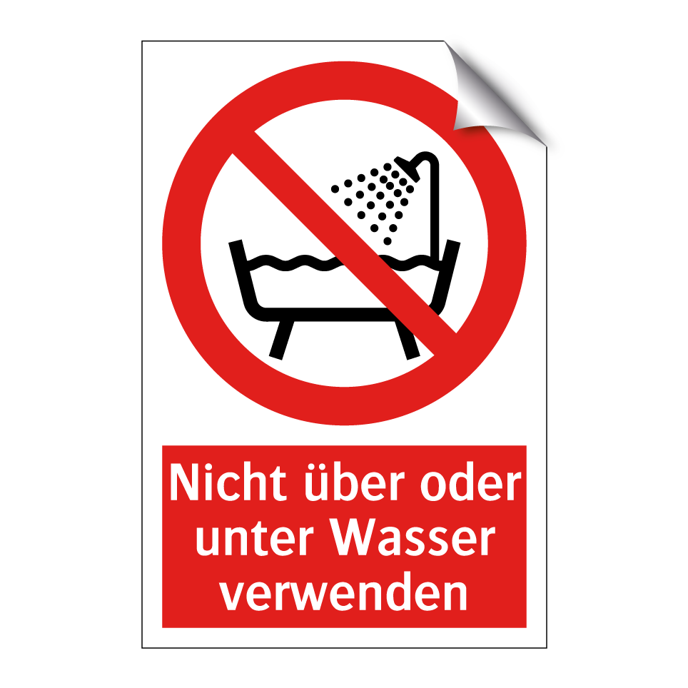 Verbotsschild mit dem Text Nicht über oder unter Wasser verwenden