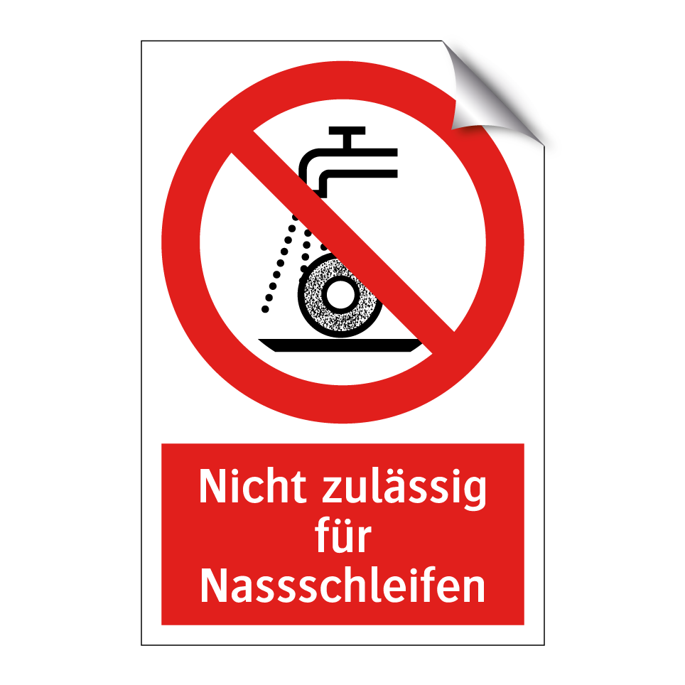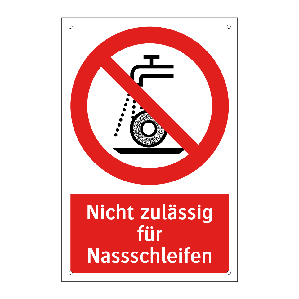 Verbotsschild mit dem Text Nicht zulässig für Nassschleifen