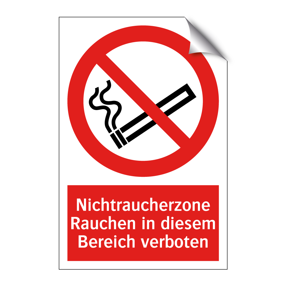 Verbotsschild mit dem Text Nichtraucherzone Rauchen in diesem Bereich verboten
