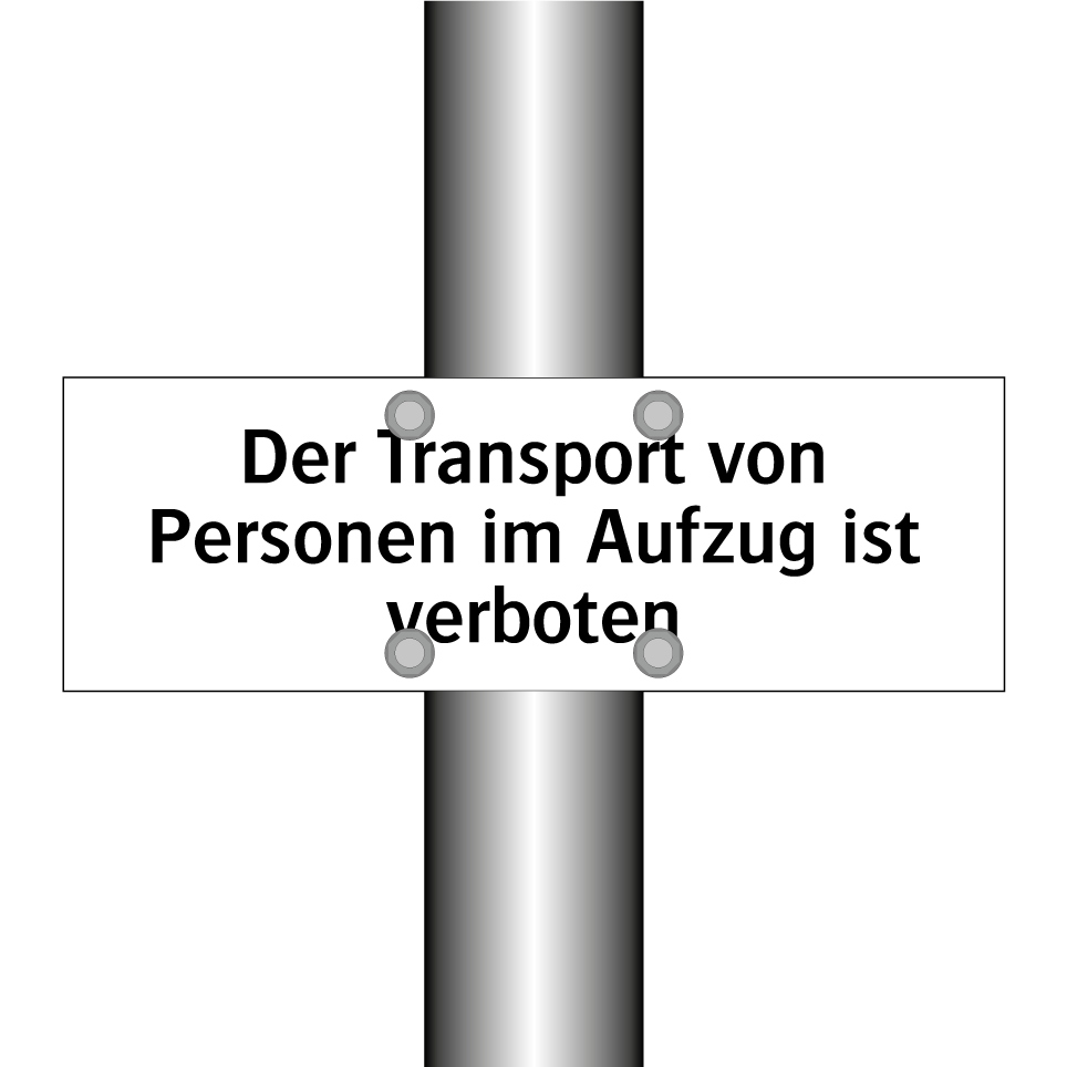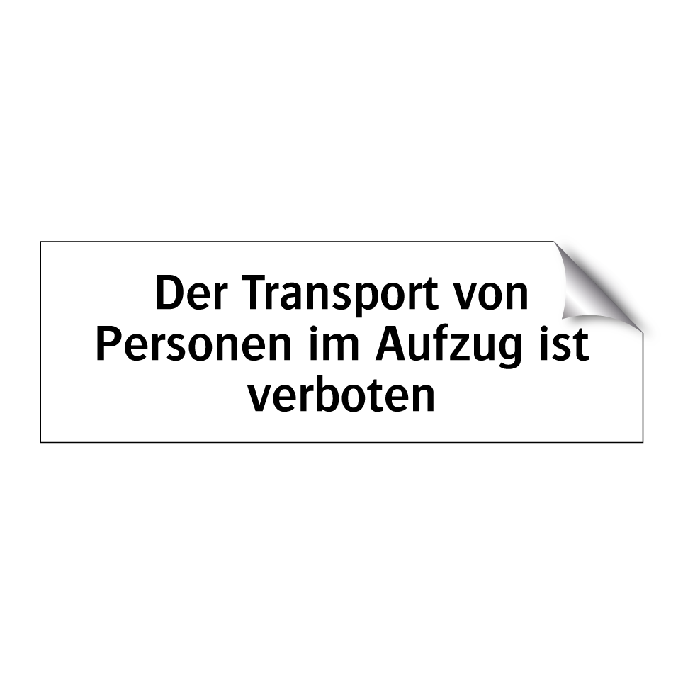 Verbotsschild mit dem Text Der Transport von Personen im Aufzug ist verboten