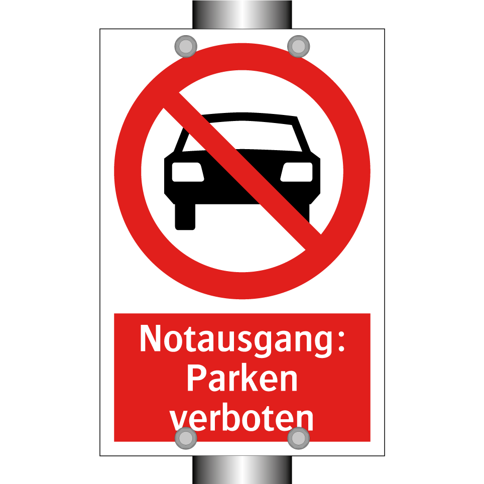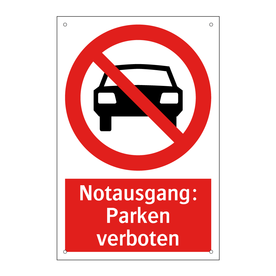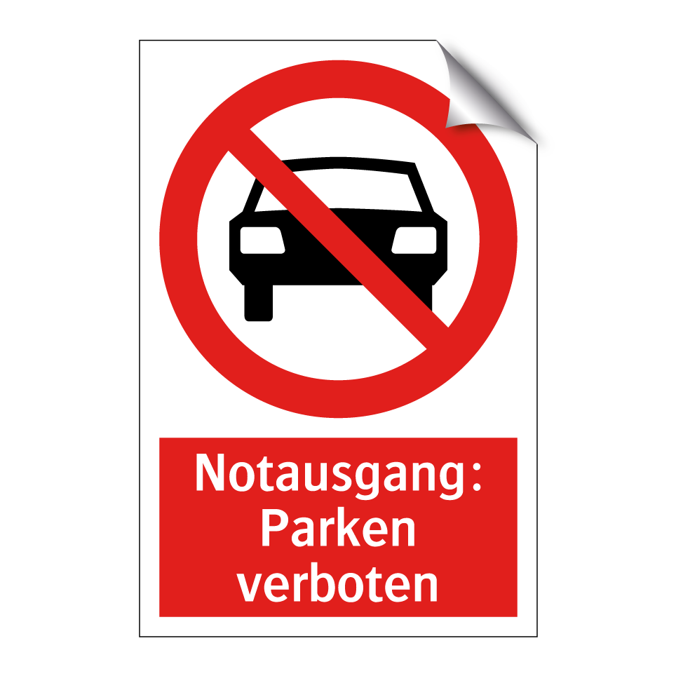 Verbotsschild mit dem Text Notausgang: Parken verboten