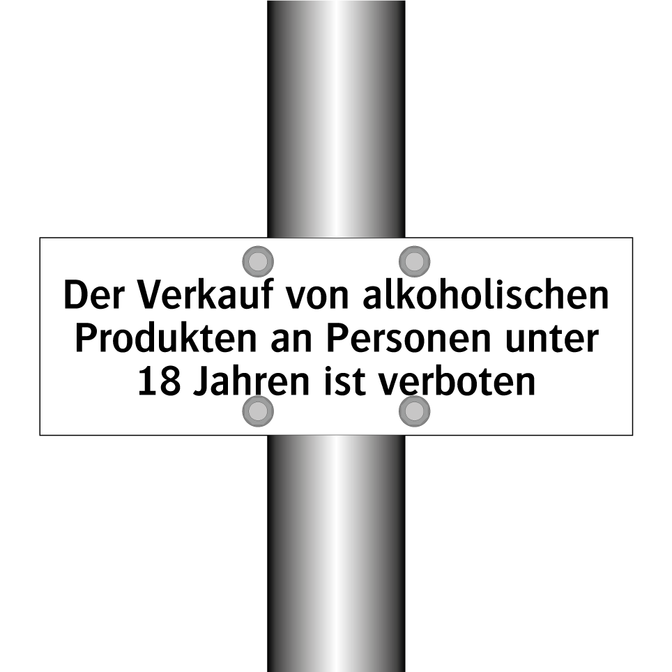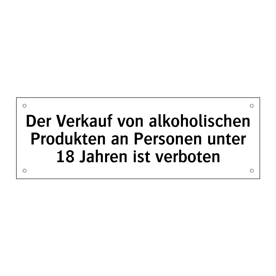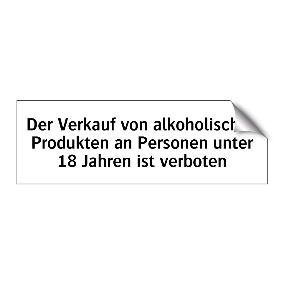 Verbotsschild mit dem Text Der Verkauf von alkoholischen Produkten an Personen unter 18 Jahren ist verboten