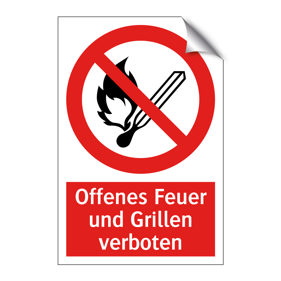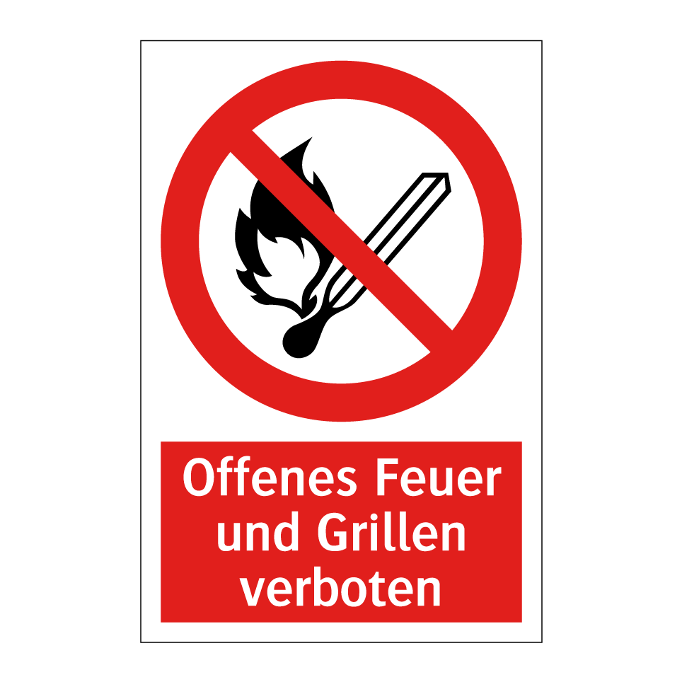 Verbotsschild mit dem Text Offenes Feuer und Grillen verboten