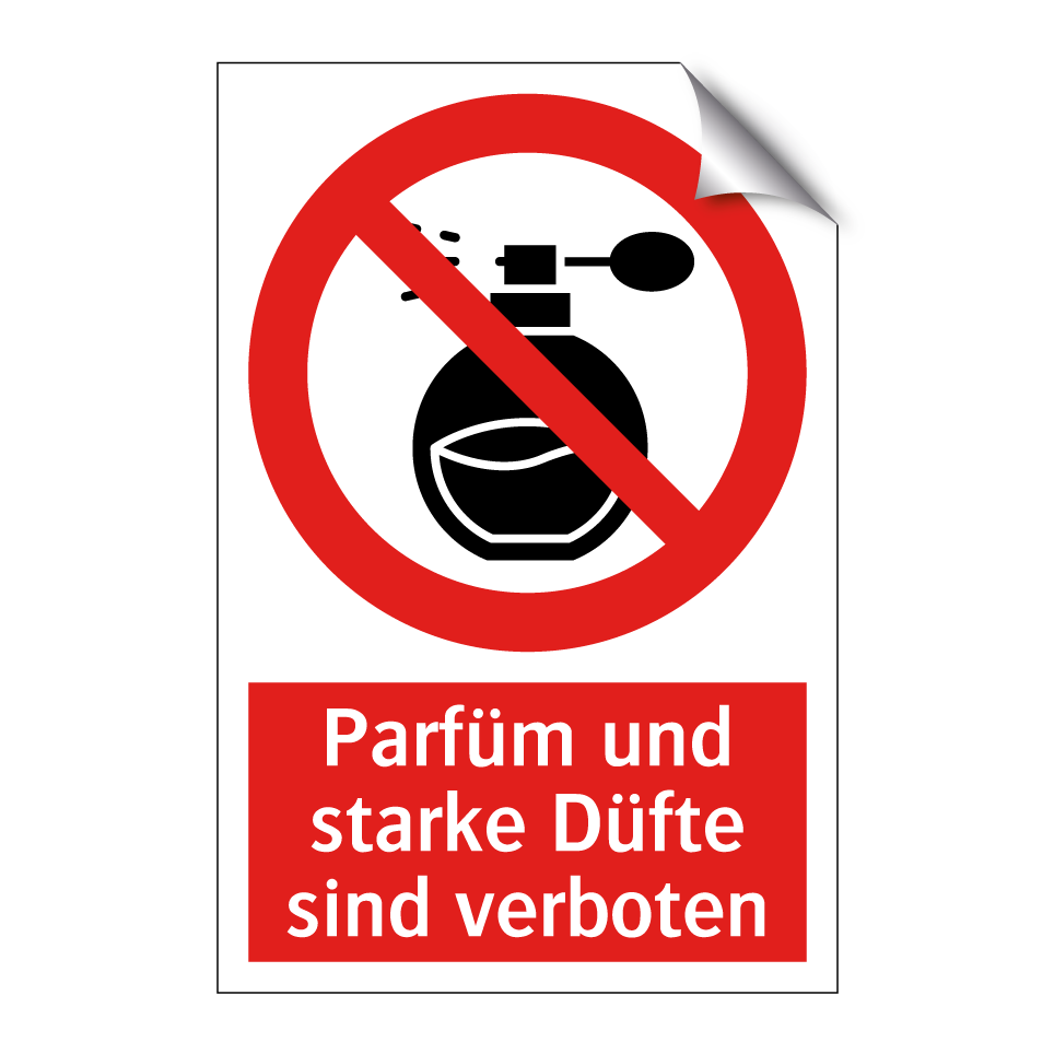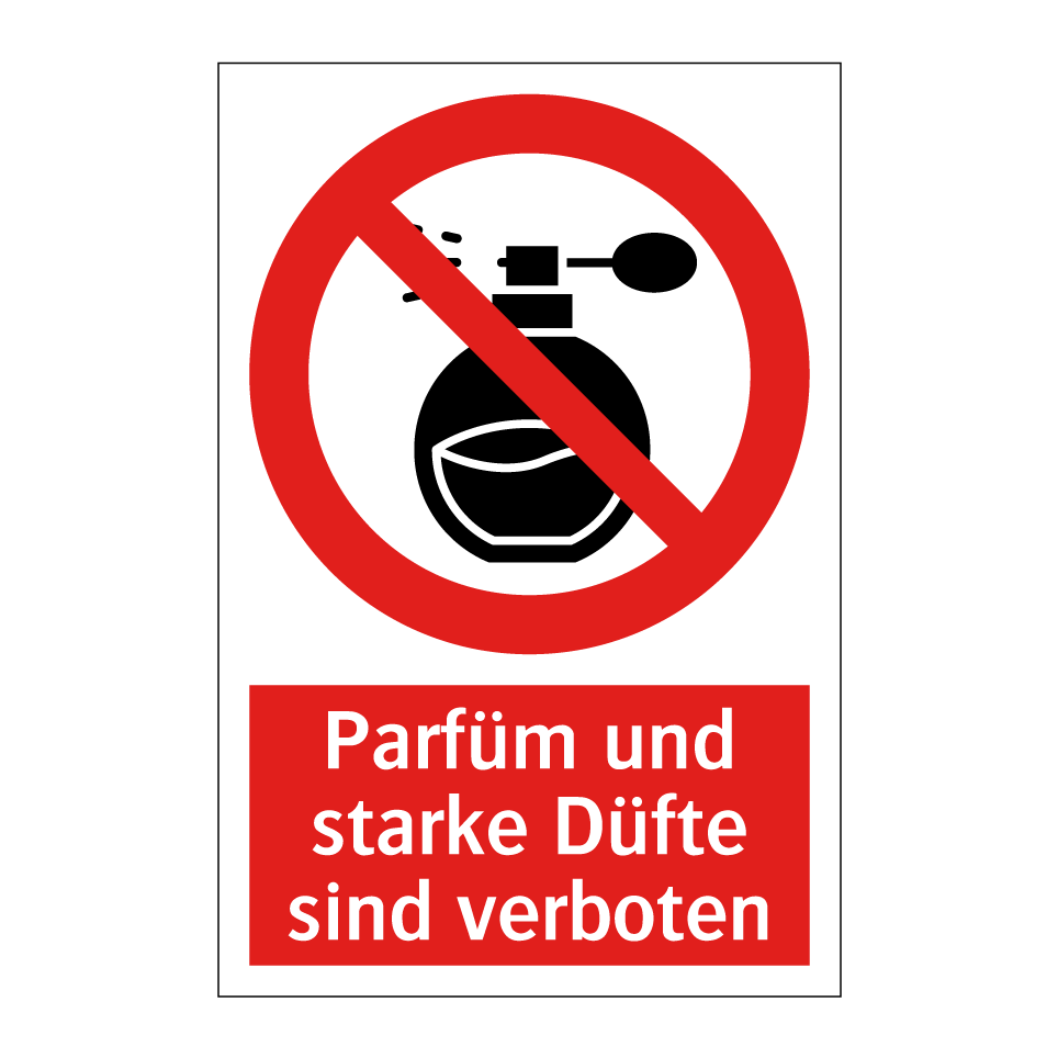 Verbotsschild mit dem Text Parfüm und starke Düfte sind verboten