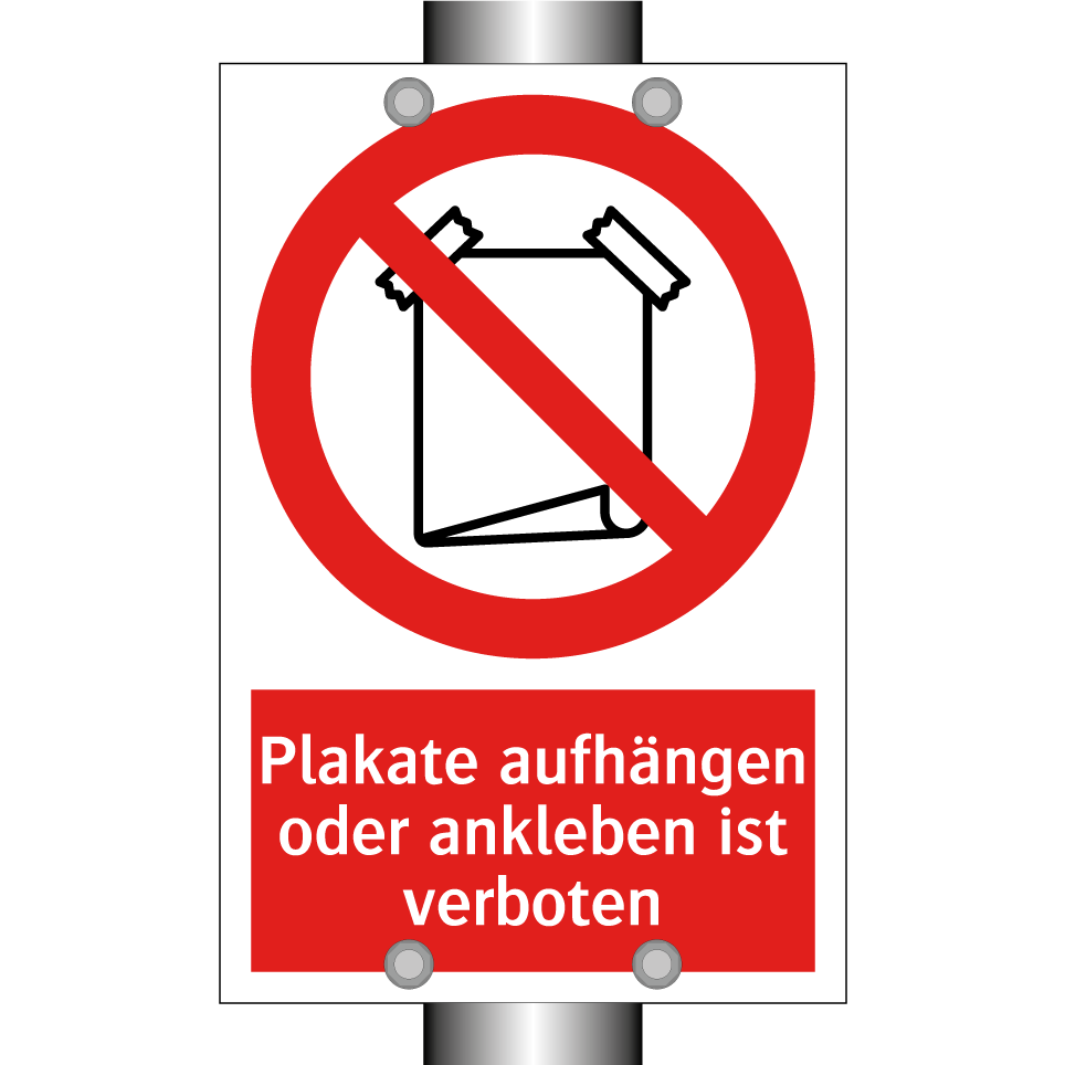 Verbotsschild mit dem Text Plakate aufhängen oder ankleben ist verboten