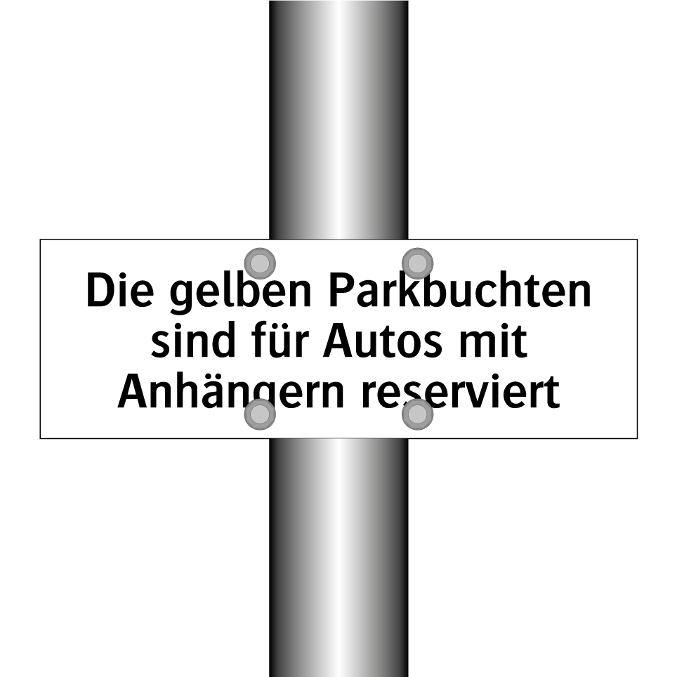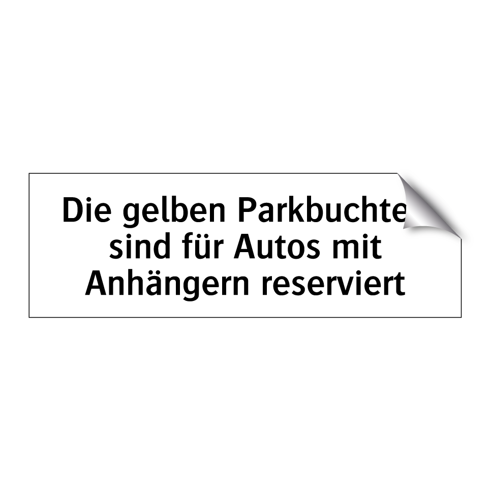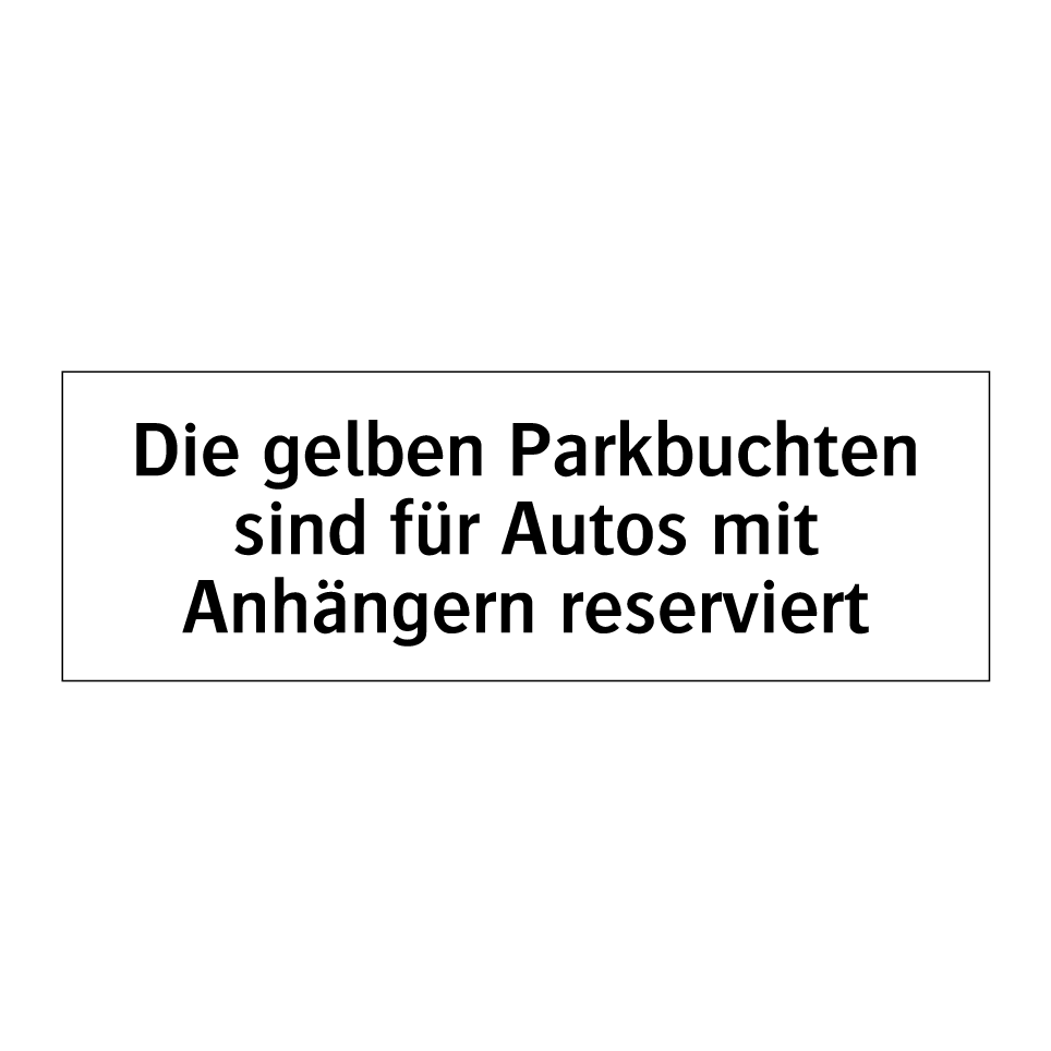 Verbotsschild mit dem Text Die gelben Parkbuchten sind für Autos mit Anhängern reserviert