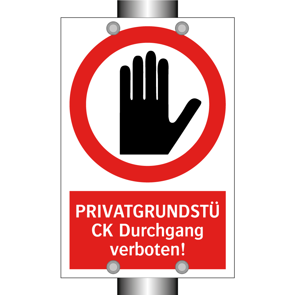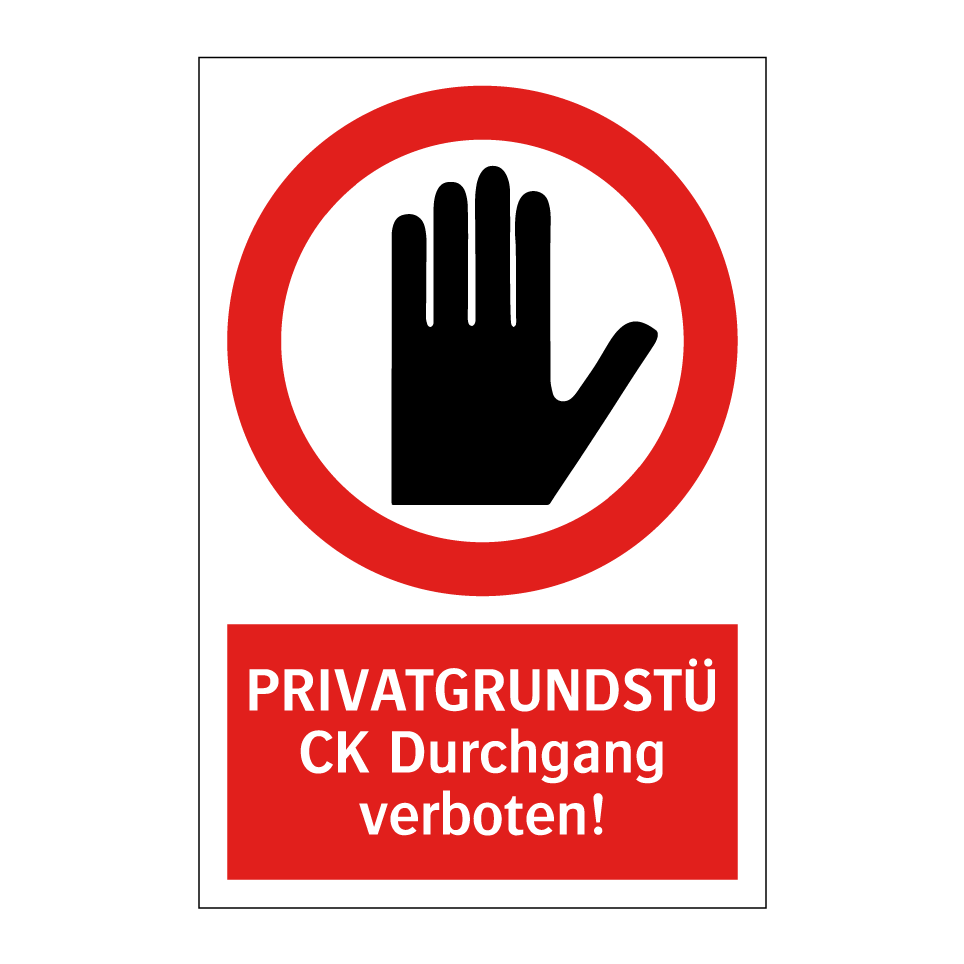 Verbotsschild mit dem Text PRIVATGRUNDSTÜCK Durchgang verboten!