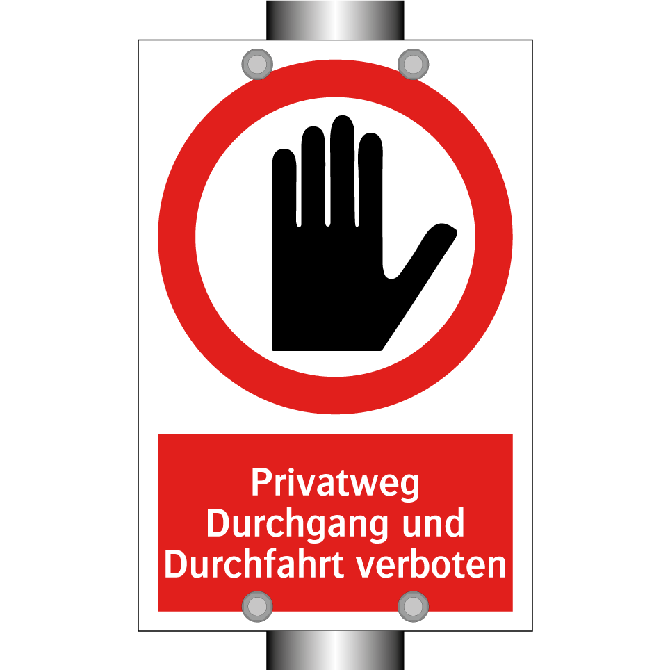 Verbotsschild mit dem Text Privatweg Durchgang und Durchfahrt verboten