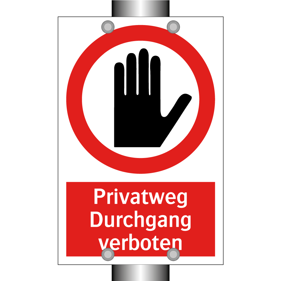 Verbotsschild mit dem Text Privatweg Durchgang verboten