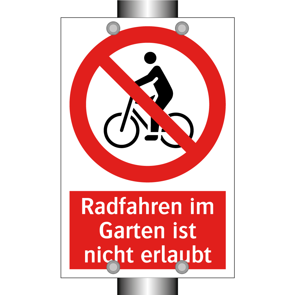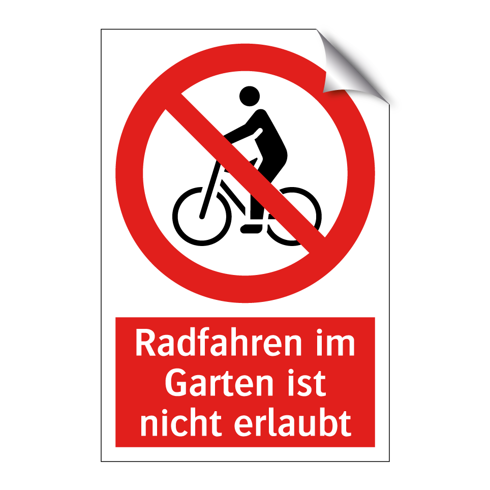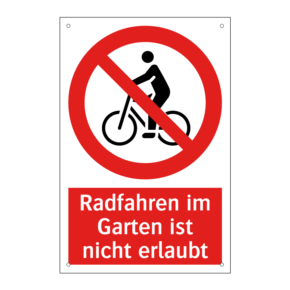 Verbotsschild mit dem Text Radfahren im Garten ist nicht erlaubt