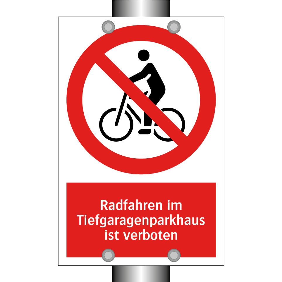 Verbotsschild mit dem Text Radfahren im Tiefgaragenparkhaus ist verboten