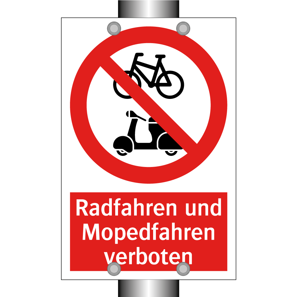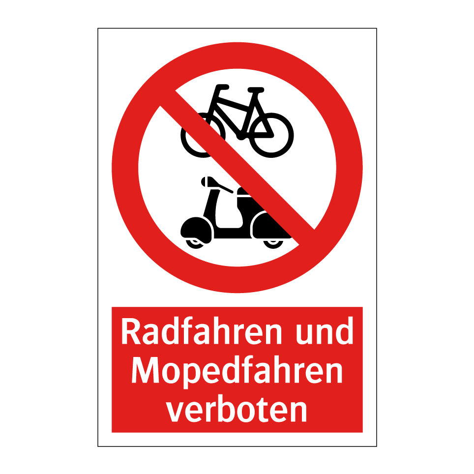 Verbotsschild mit dem Text Radfahren und Mopedfahren verboten