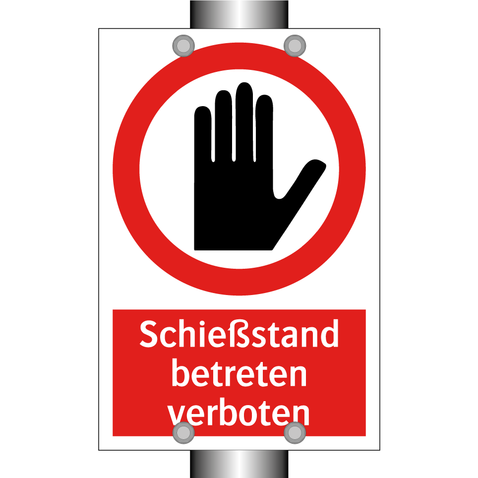 Verbotsschild mit dem Text Schießstand betreten verboten
