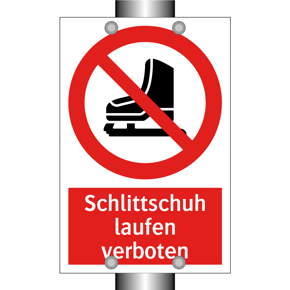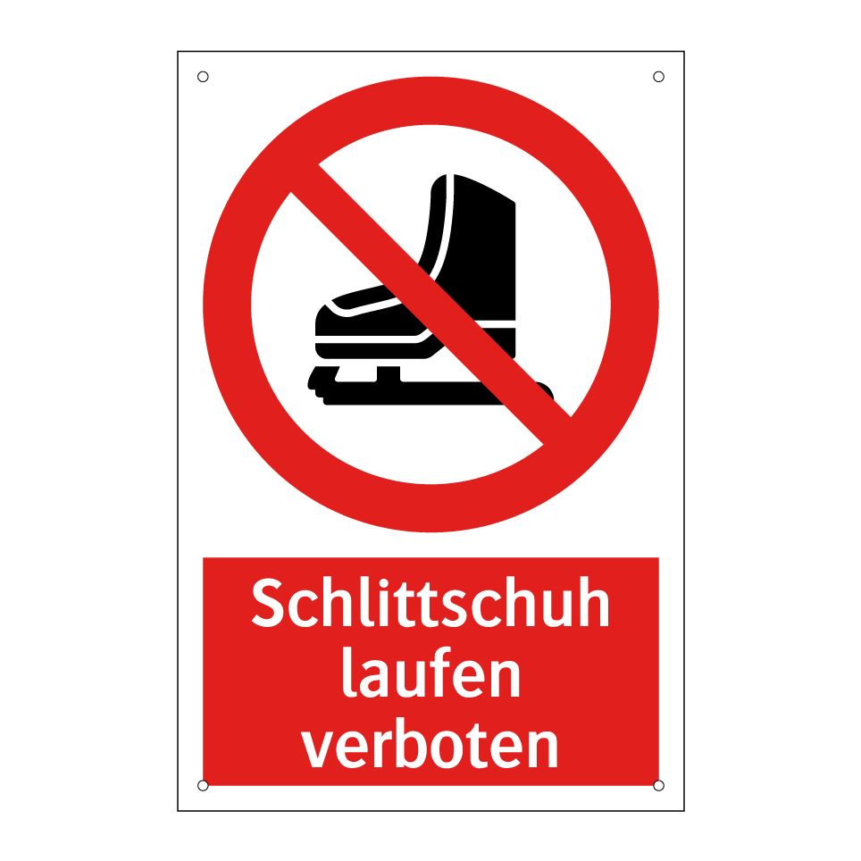 Verbotsschild mit dem Text Schlittschuh laufen verboten