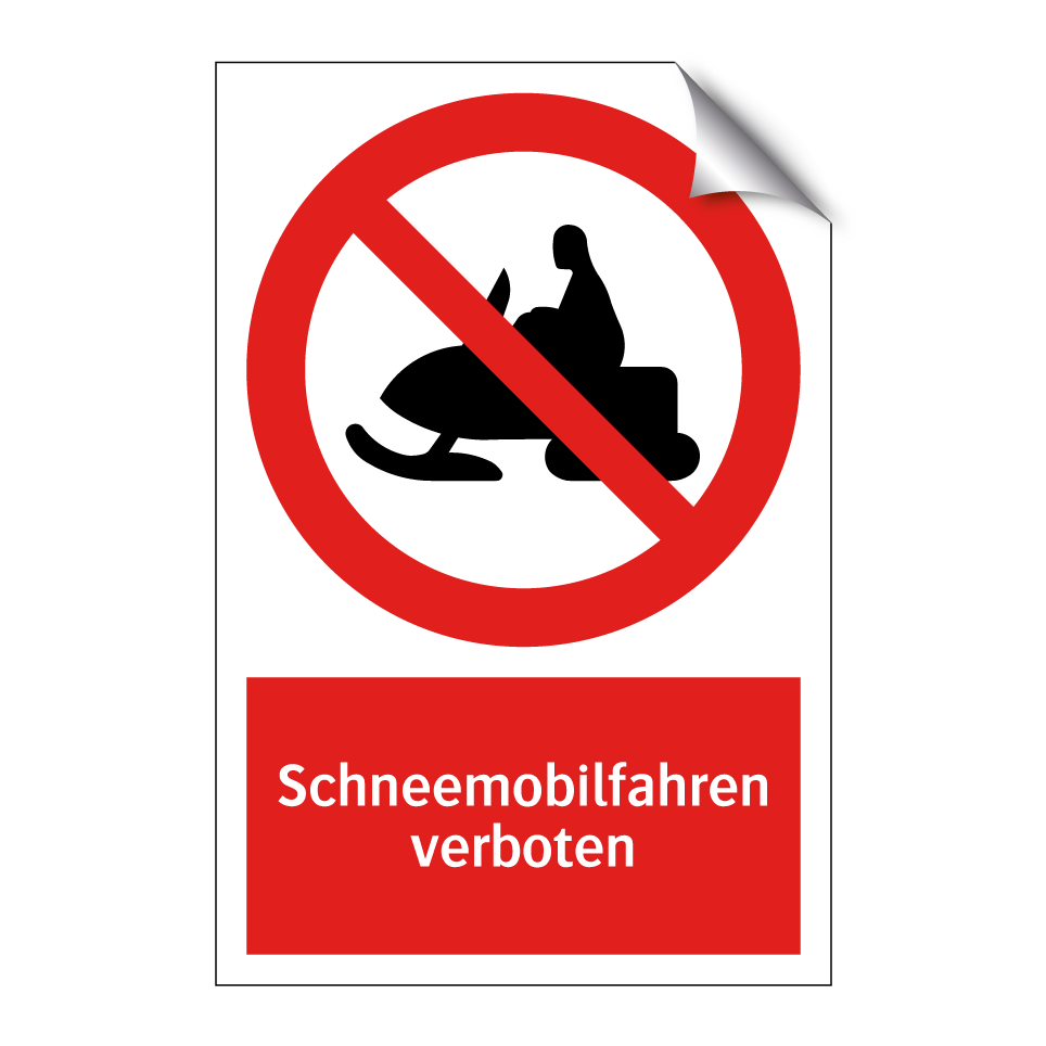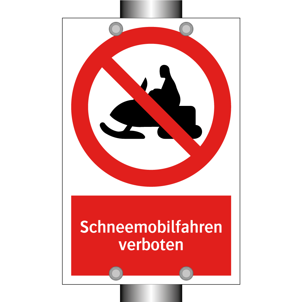 Verbotsschild mit dem Text Schneemobilfahren verboten