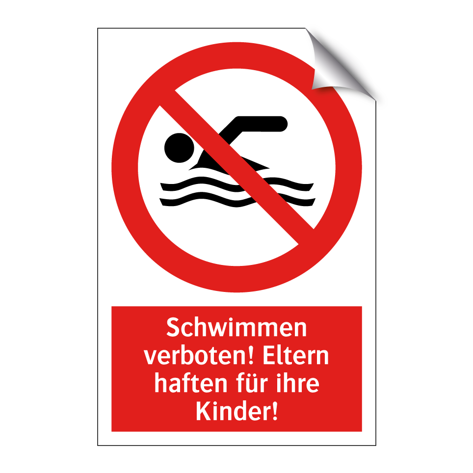 Verbotsschild mit dem Text Schwimmen verboten! Eltern haften für ihre Kinder!