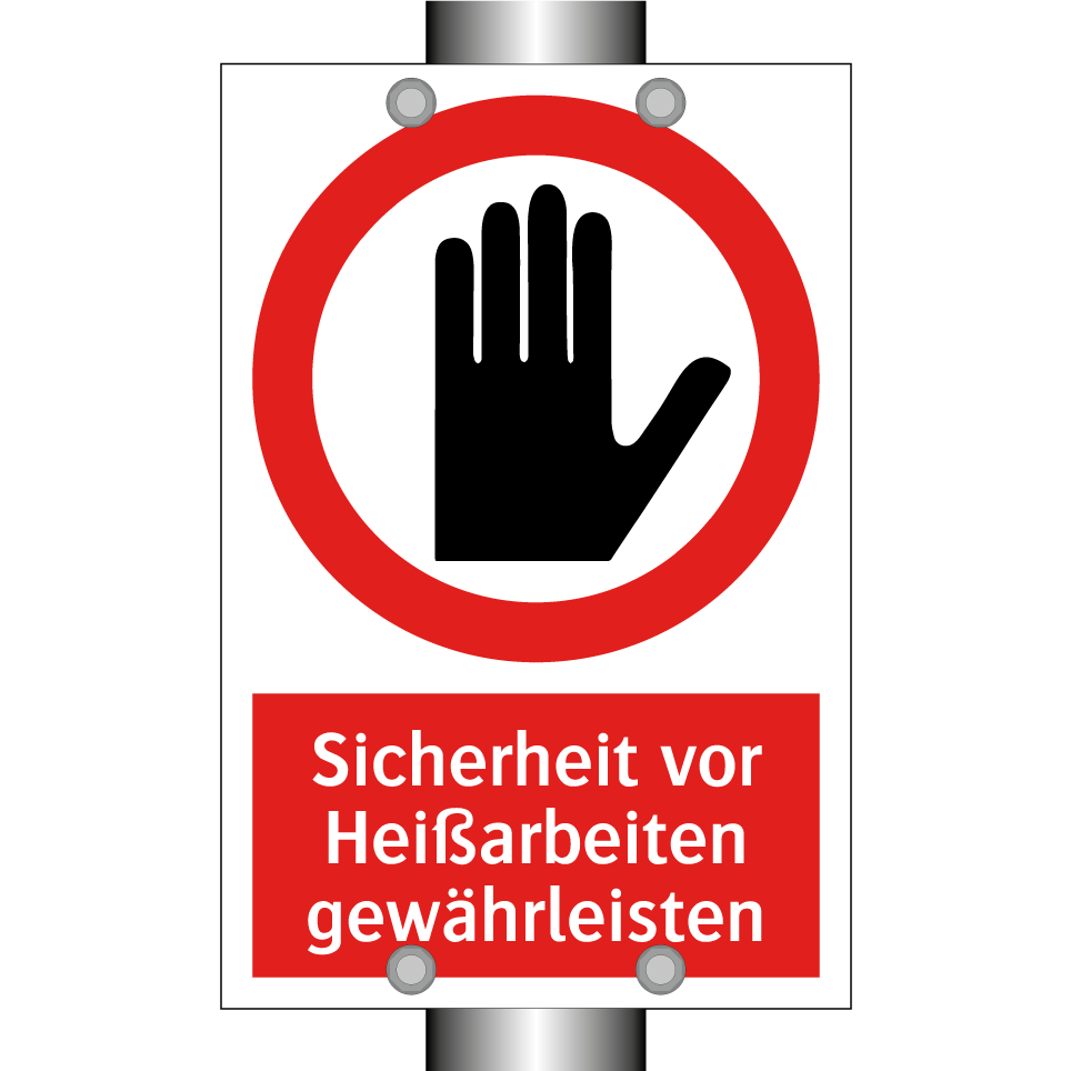 Verbotsschild mit dem Text Sicherheit vor Heißarbeiten gewährleisten