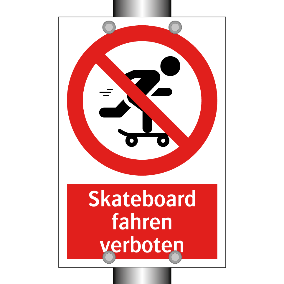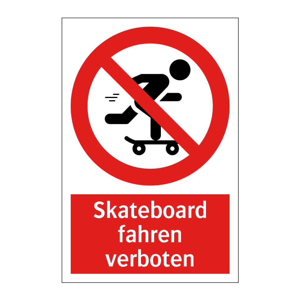 Verbotsschild mit dem Text Skateboard fahren verboten