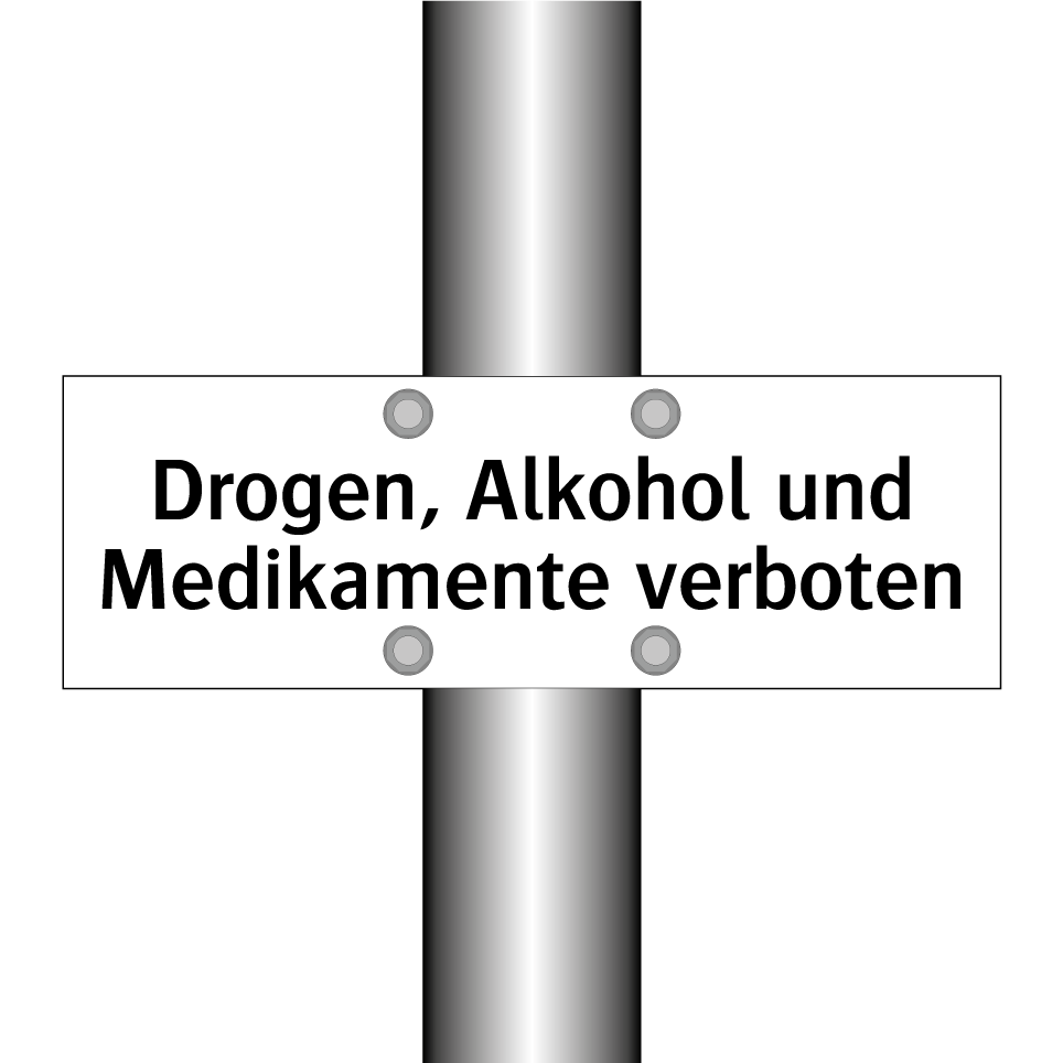 Verbotsschild mit dem Text Drogen, Alkohol und Medikamente verboten