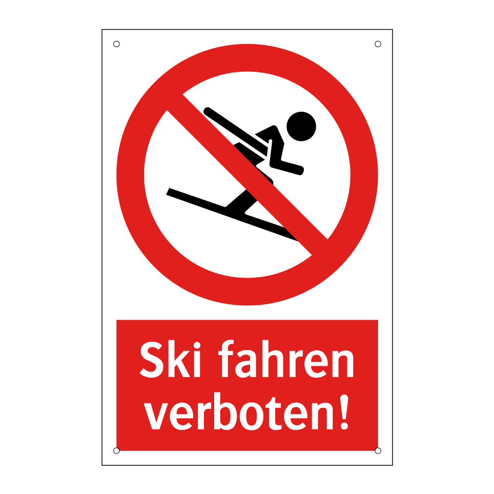 Diese auffällige Verbotsschild mit rotem Hintergrund und weißer Schrift ist ideal, um Skifahren in bestimmten Bereichen zu untersagen. Die klare Symbolik sorgt dafür, dass die Botschaft unmissverständlich ist. Diese Verbotsschilder sind perfekt geeignet für Skipisten, die aus Sicherheitsgründen gesperrt sind, oder für private Grundstücke, auf denen Skifahren nicht gestattet ist. Platzieren Sie das Schild an gut sichtbaren Stellen, um sicherzustellen, dass alle Besucher die Regeln respektieren. Ob in Skigebieten, an Wanderwegen oder in Naturschutzgebieten – dieses Schild hilft, unerwünschte Aktivitäten effektiv zu verhindern.