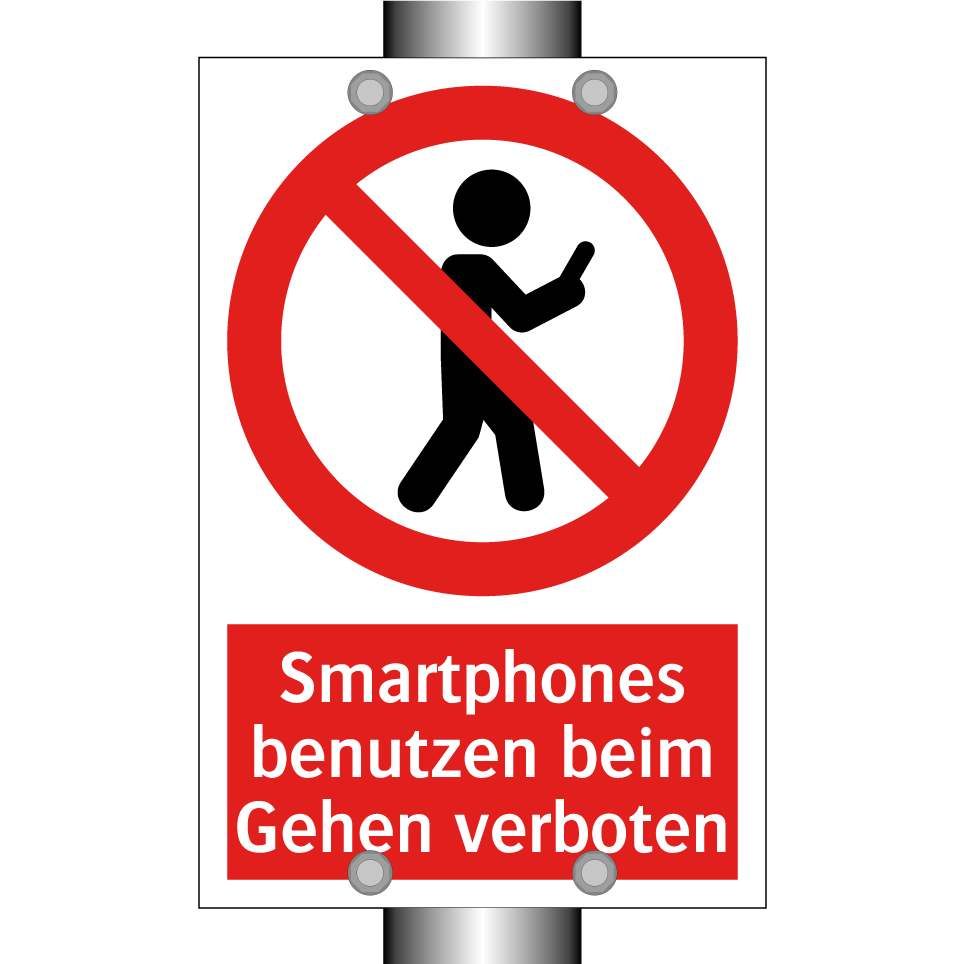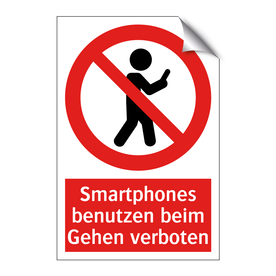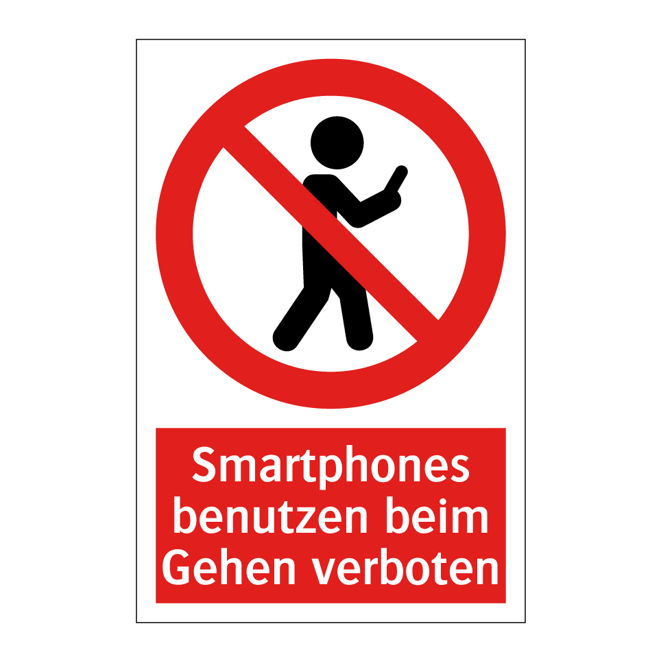 Verbotsschild mit dem Text Smartphones benutzen beim Gehen verboten