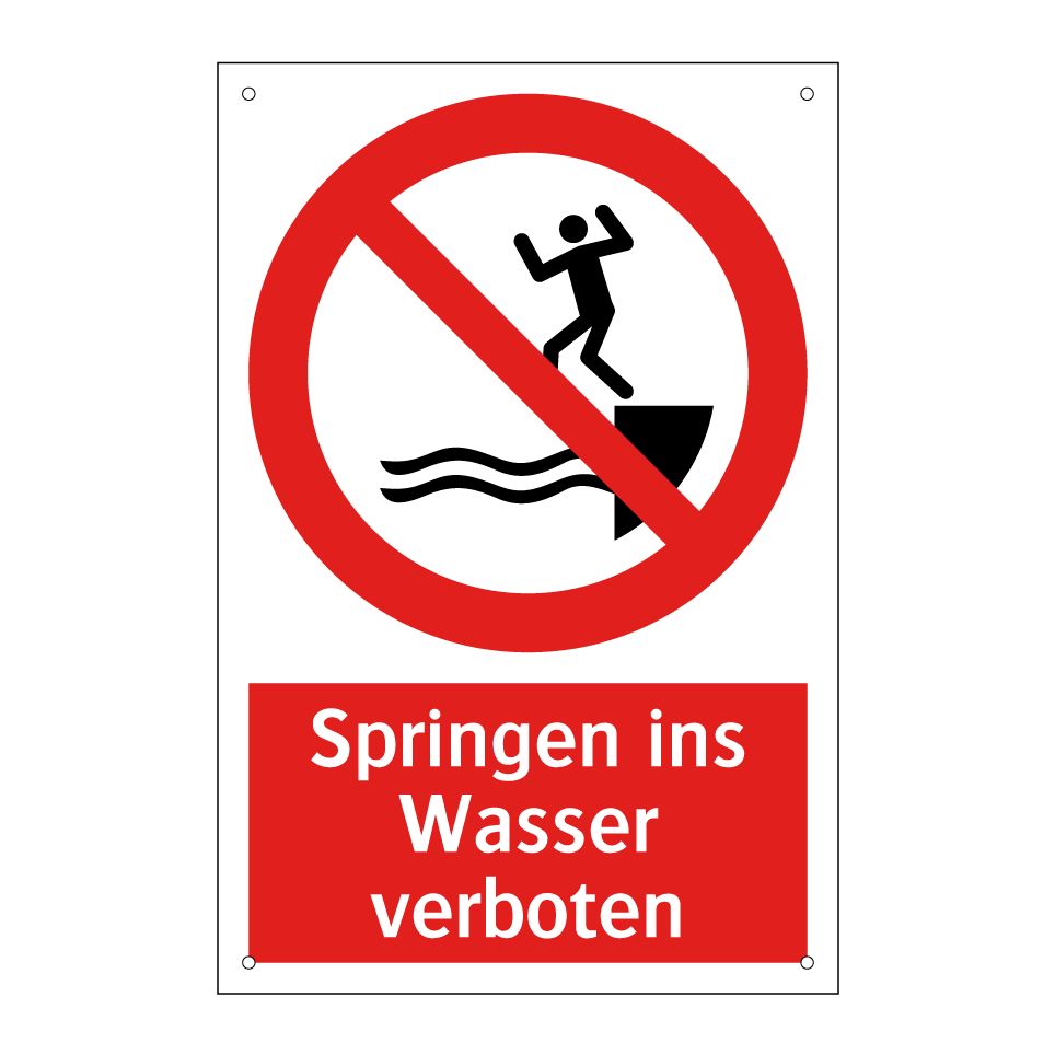 Verbotsschild mit dem Text Springen ins Wasser verboten