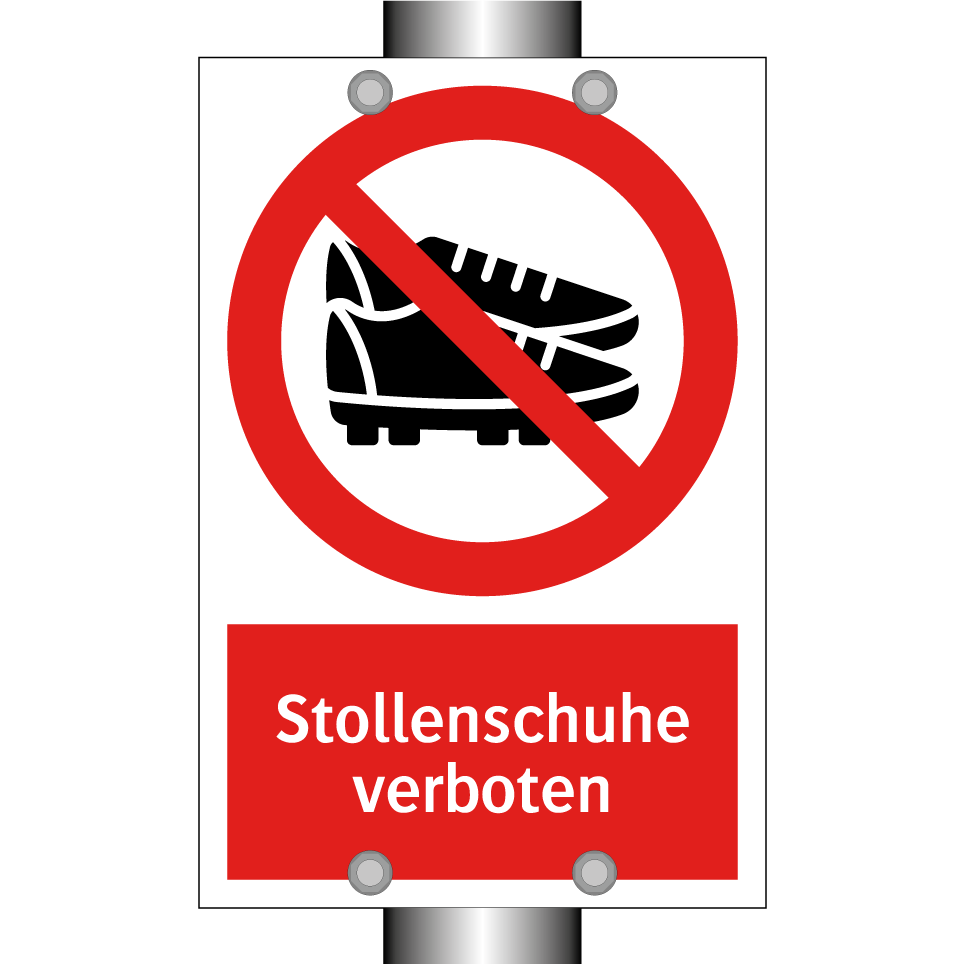 Verbotsschild mit dem Text Stollenschuhe verboten