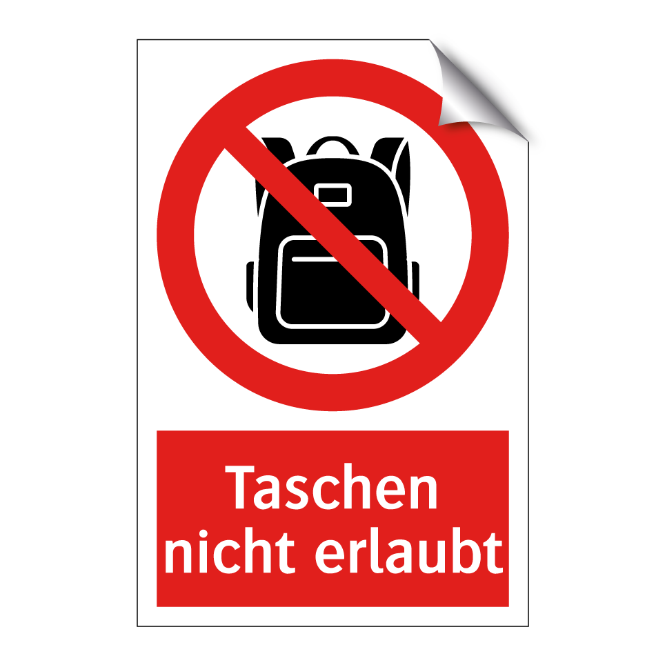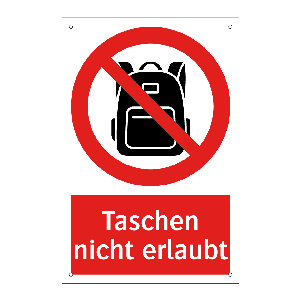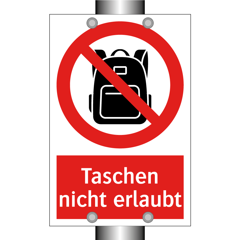 Verbotsschild mit dem Text Taschen nicht erlaubt