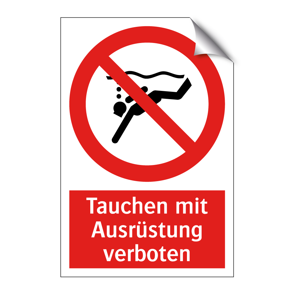 Verbotsschild mit dem Text Tauchen mit Ausrüstung verboten