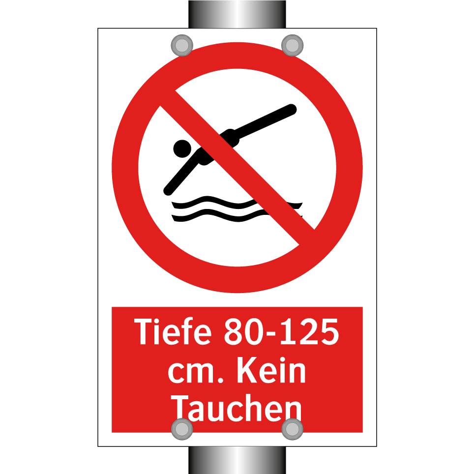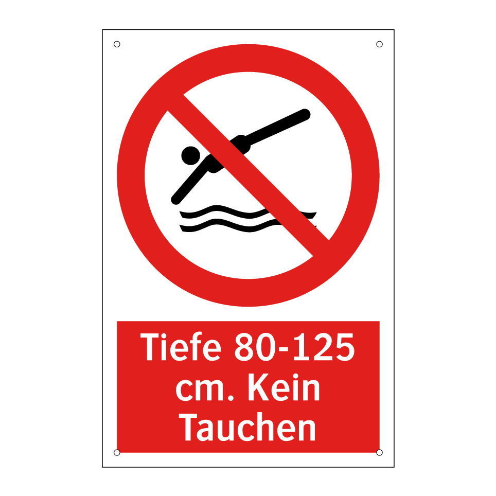 Verbotsschild mit dem Text Tiefe 80-125 cm. Kein Tauchen