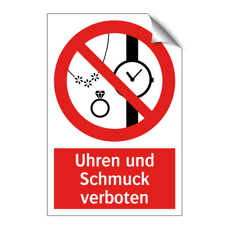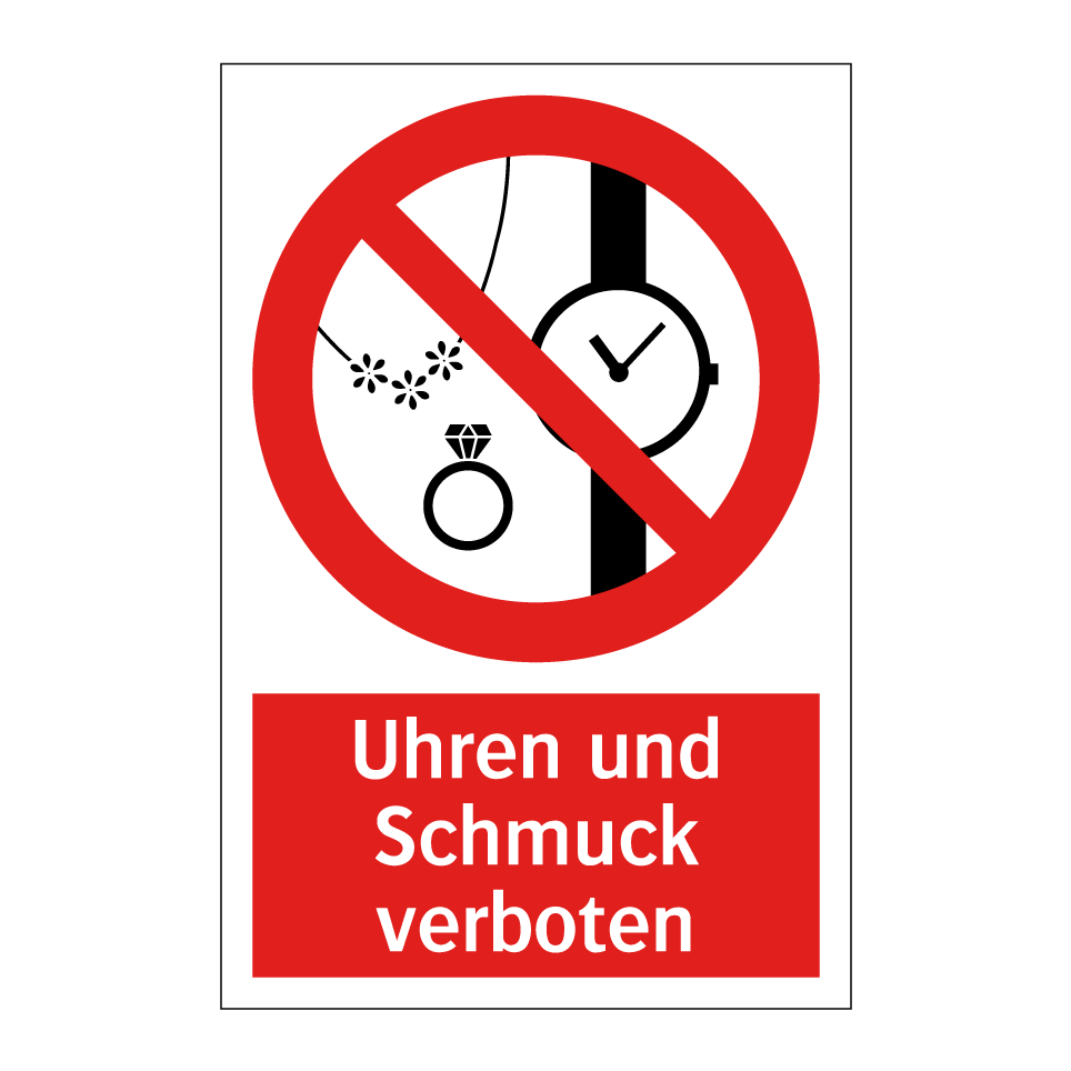 Verbotsschild mit dem Text Uhren und Schmuck verboten