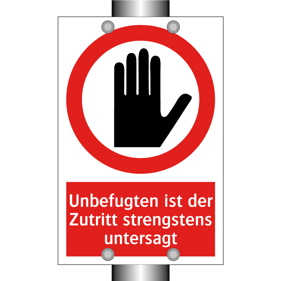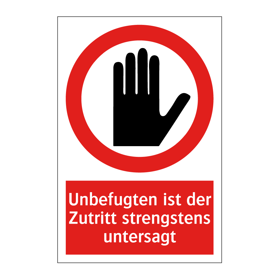 Verbotsschild mit dem Text Unbefugten ist der Zutritt strengstens untersagt