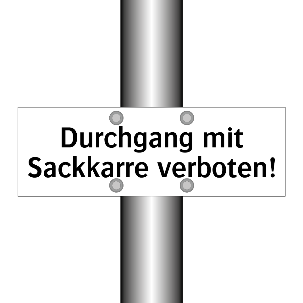 Verbotsschild mit dem Text Durchgang mit Sackkarre verboten!
