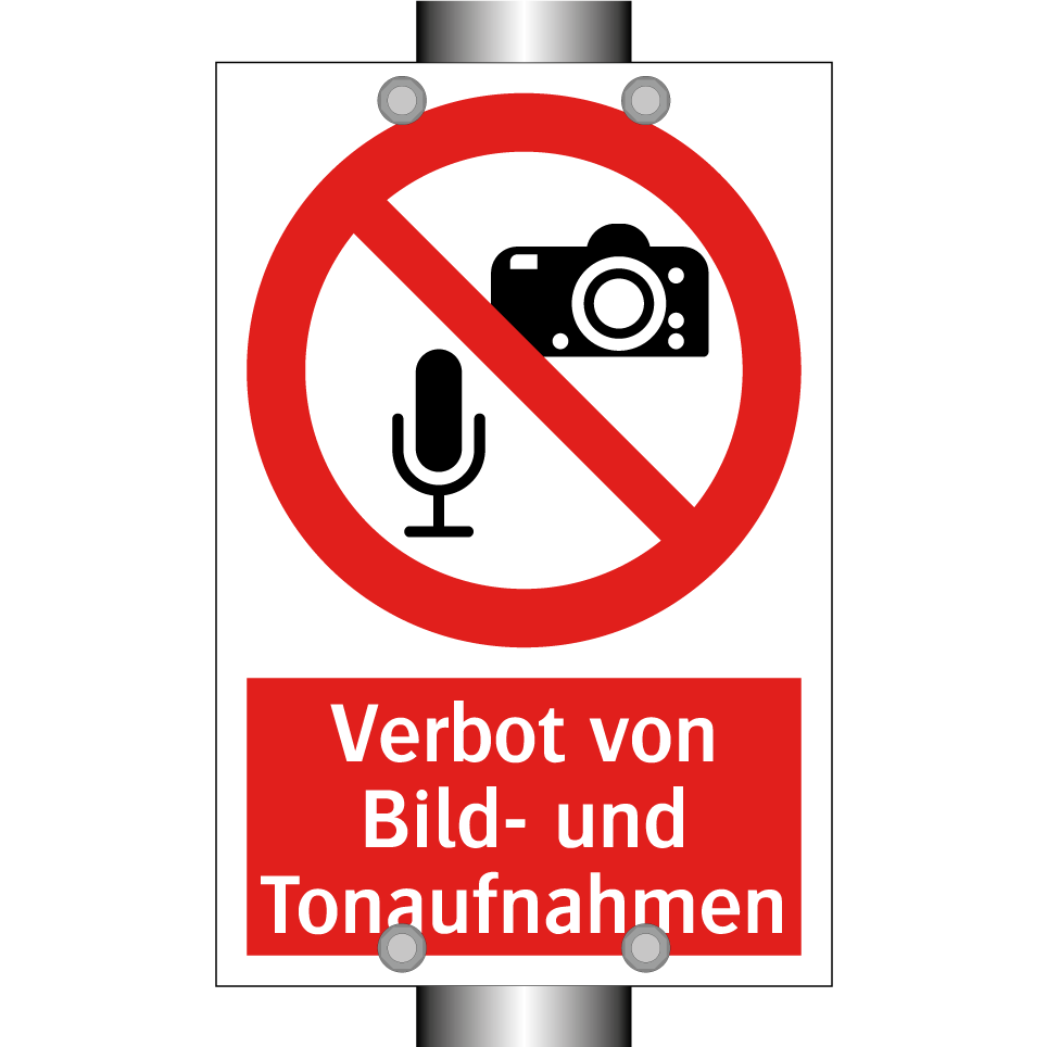 Verbotsschild mit dem Text Verbot von Bild- und Tonaufnahmen