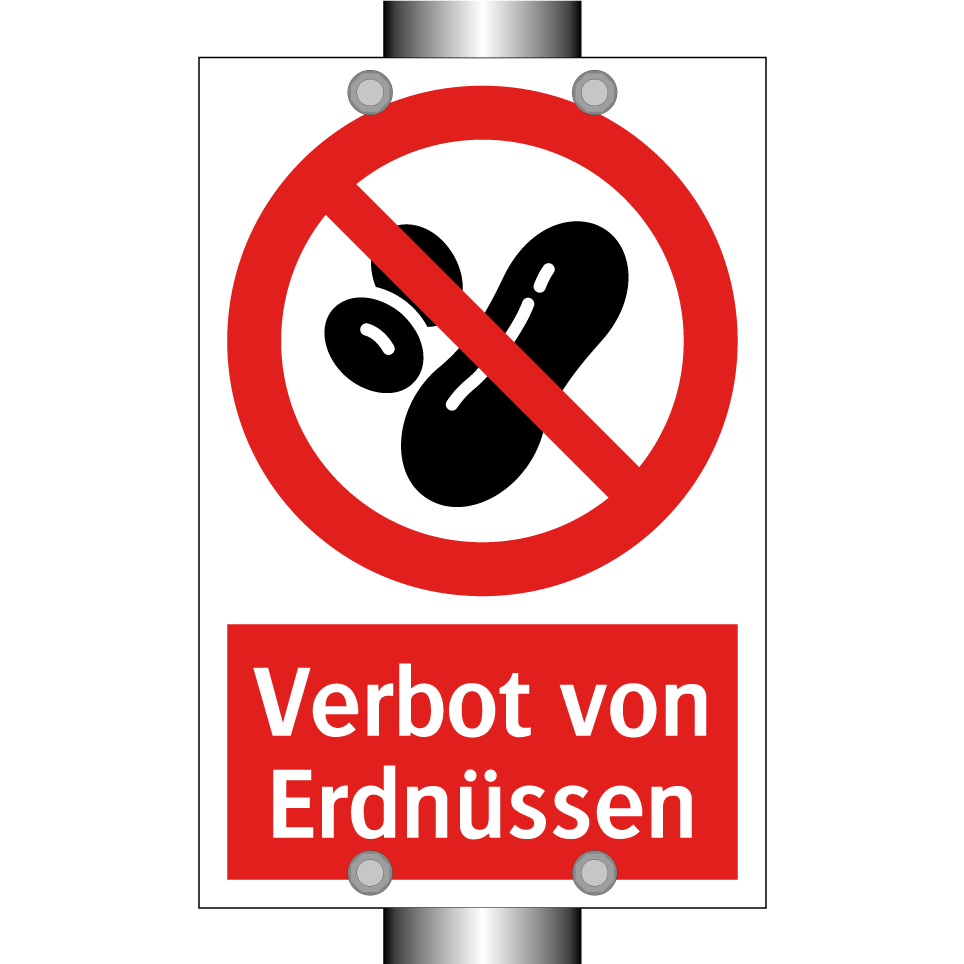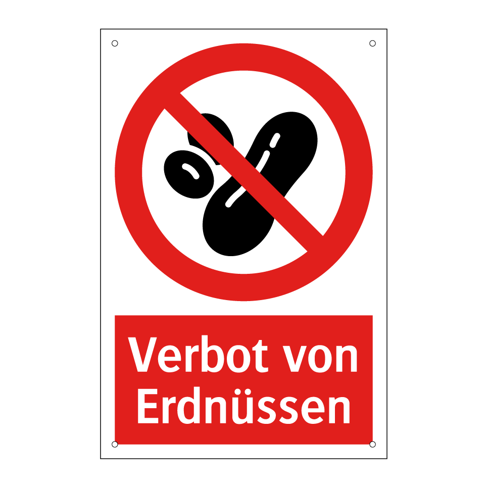 Verbotsschild mit dem Text Verbot von Erdnüssen